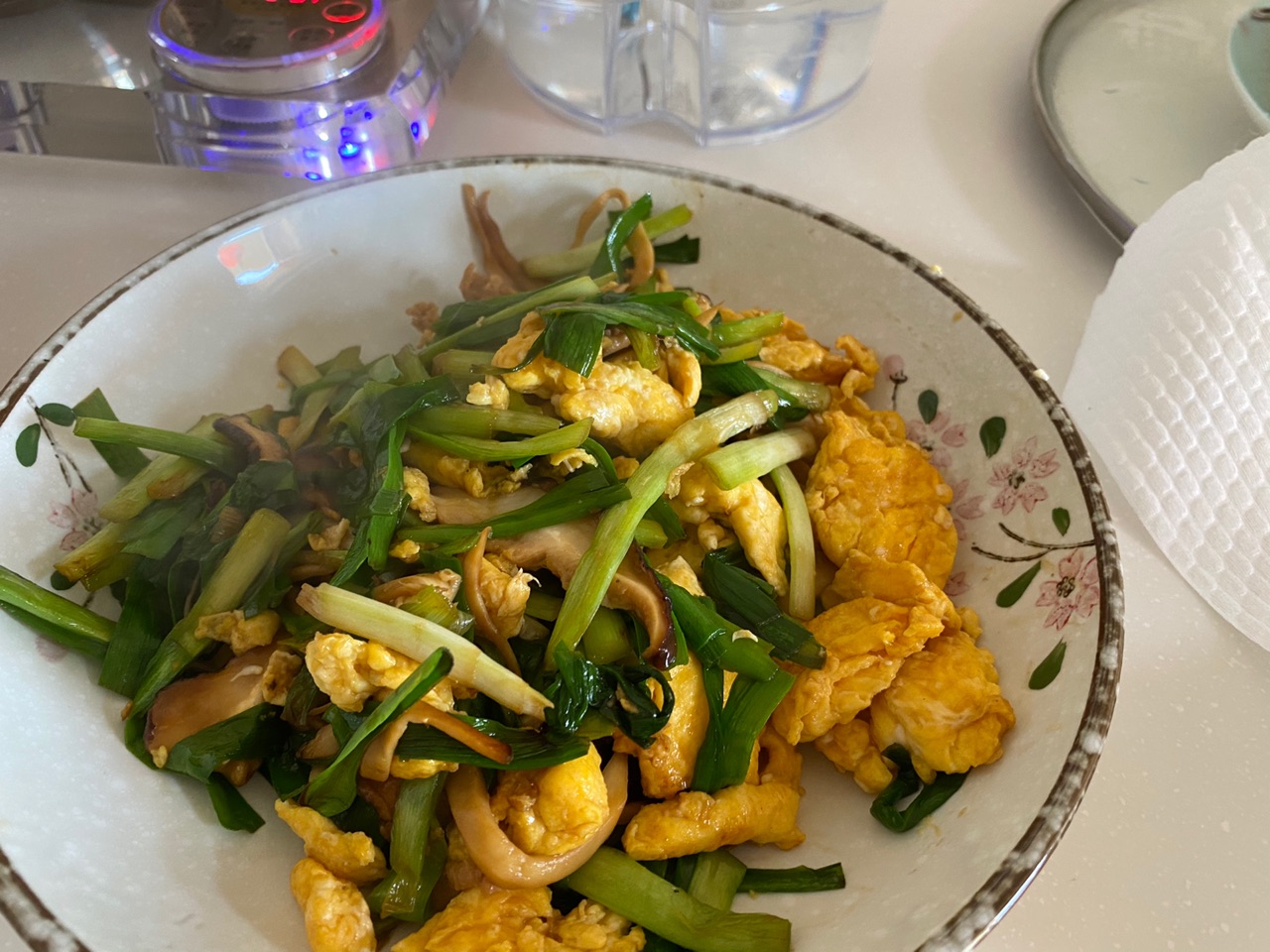 辅料:冷水100克、食用油50克、炒蔬菜丝一份