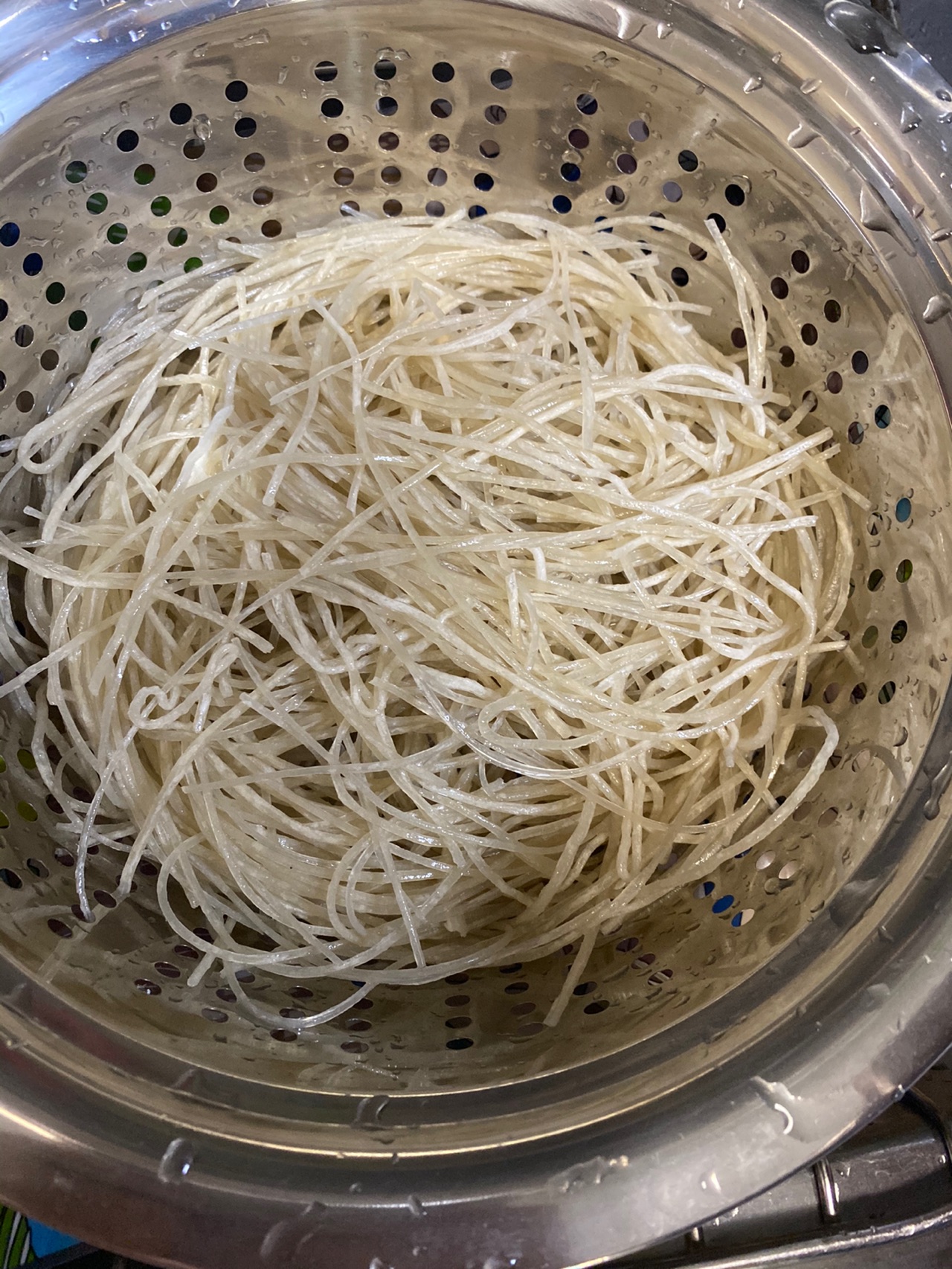 辅料:粉条适量、黄花菜一丢丢、料酒适量、盐适量、老抽适量、葱末姜末适量、鸡蛋1个、黑胡椒粉适量、生抽适量、十三香适量、醋适量、花椒粉/油适量、香菜2根