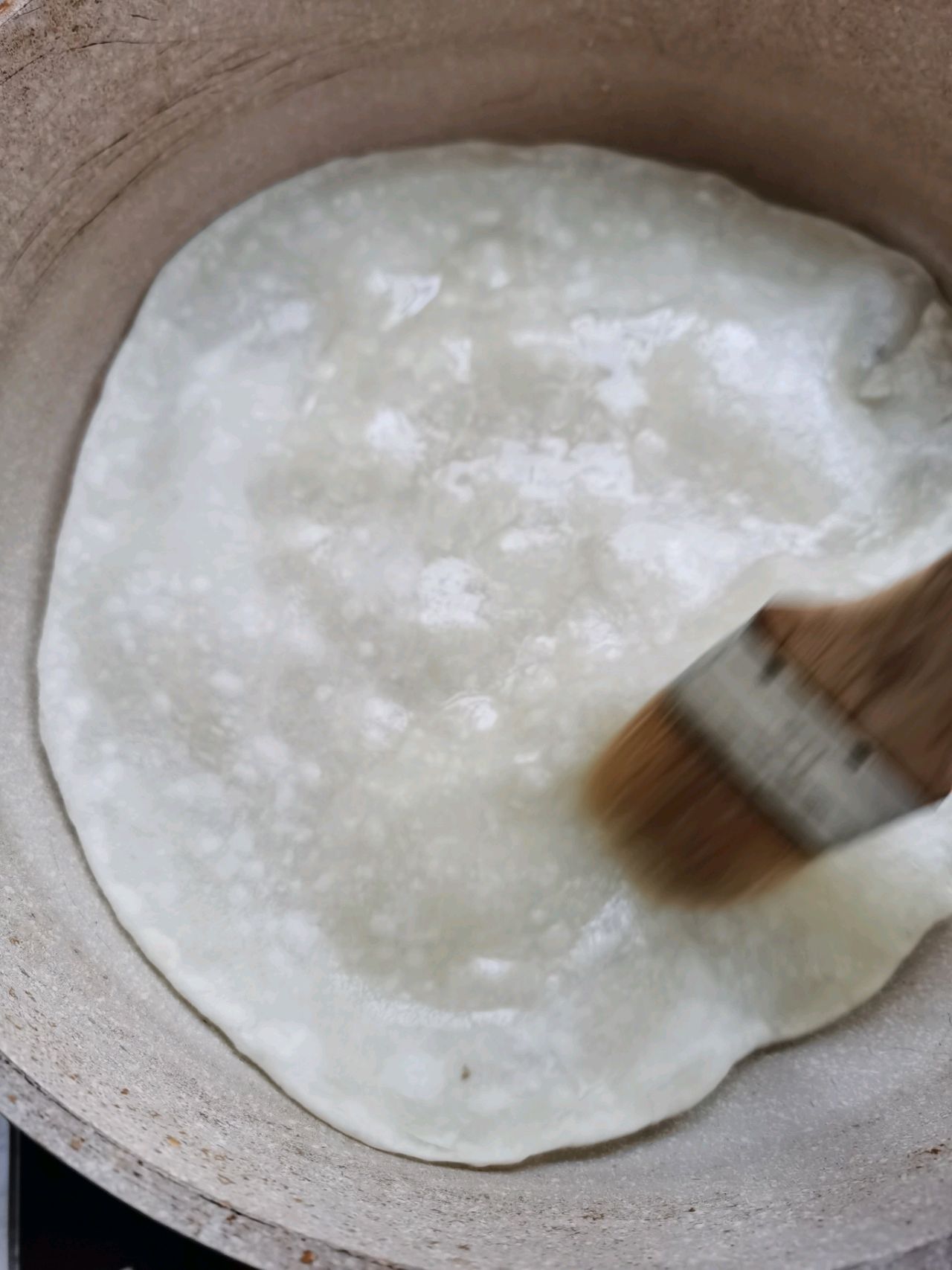 烙饼全程中火,时间大概三分钟就可以,正反面都要刷油,才会使饼的水分不流失。