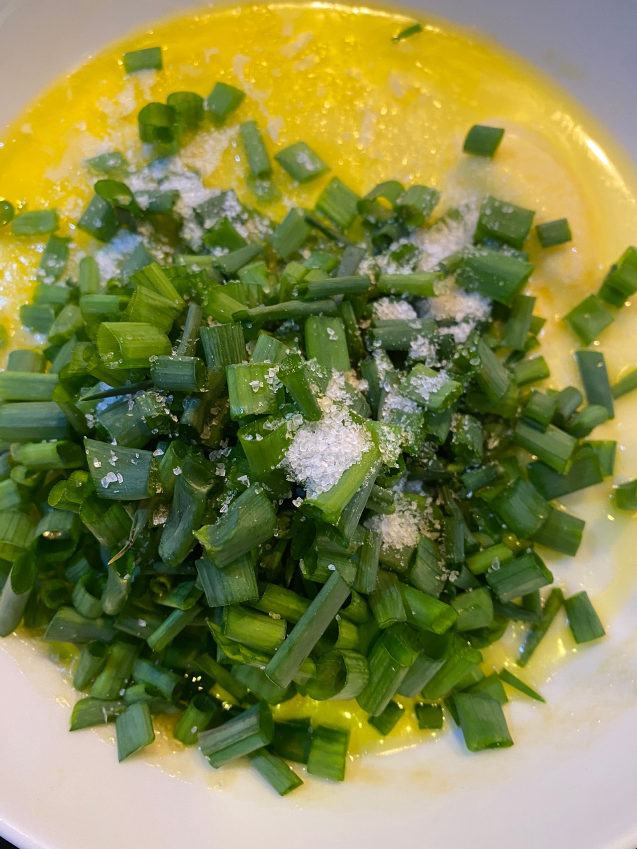 辅料:盐3克、黄油45克、小葱20克、食用油3大勺、白砂糖6克