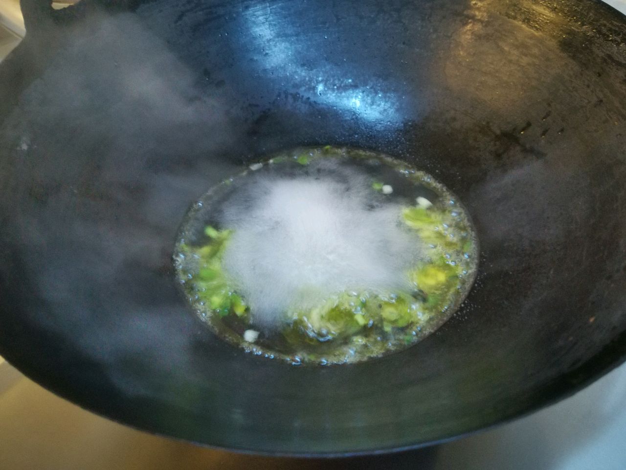 步骤2、锅内葱花用油爆香,加入适量冷水煮开