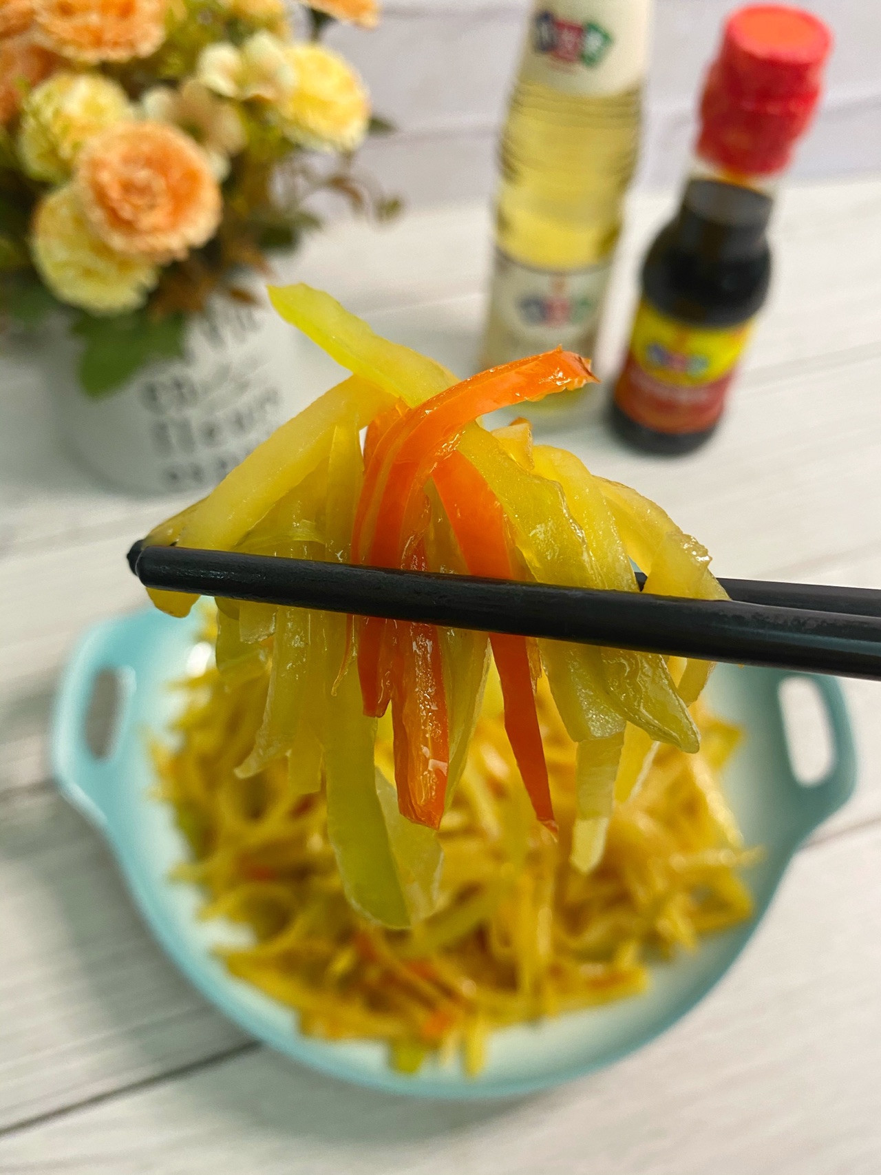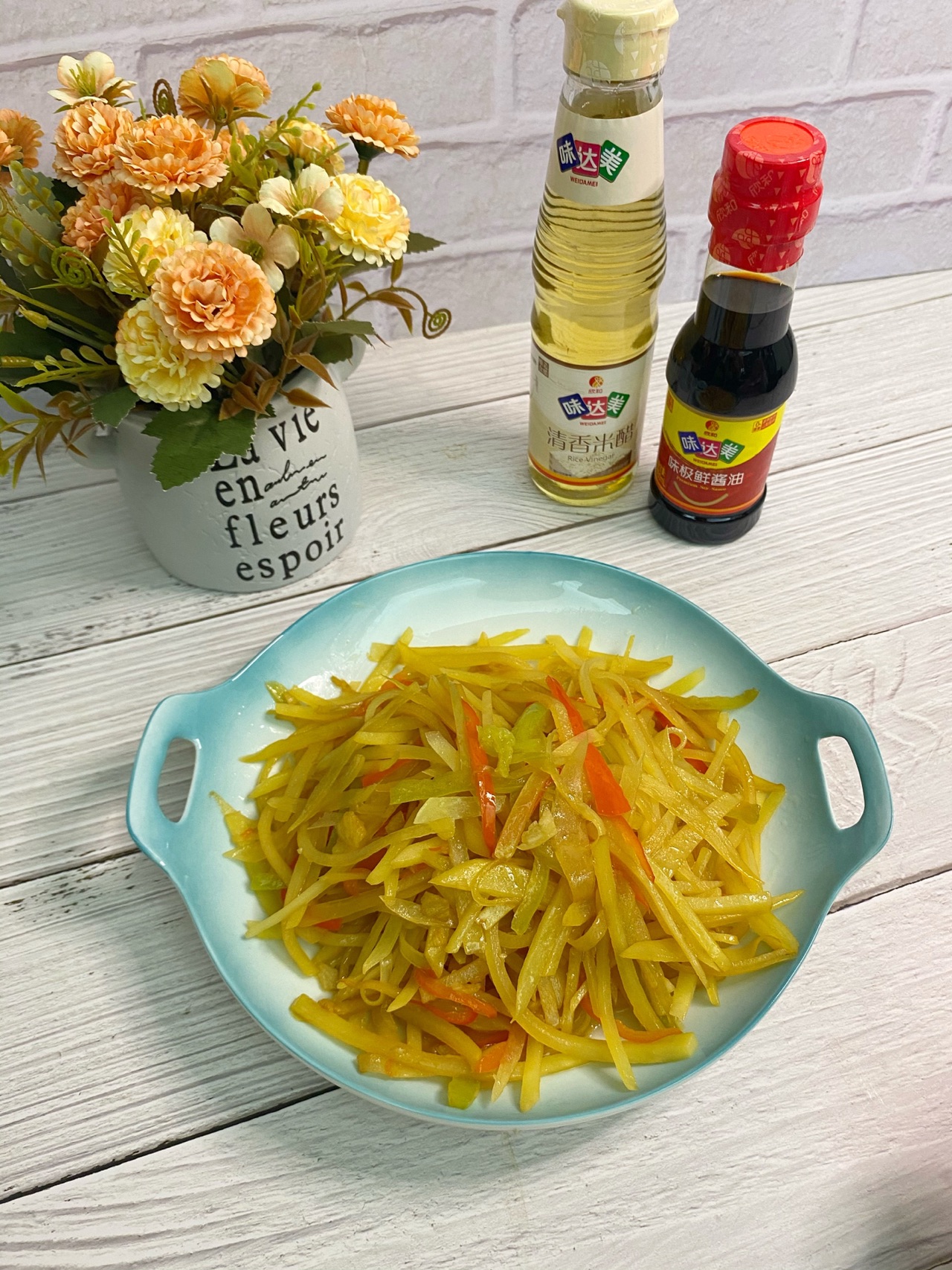 步骤10、简单的一盘醋溜土豆丝就可以开吃啦。