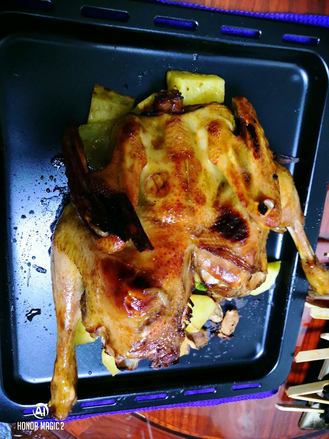 步骤11、表面考好的话,再反过来烤一下,如果颜色过深,可加一层铝锡纸。