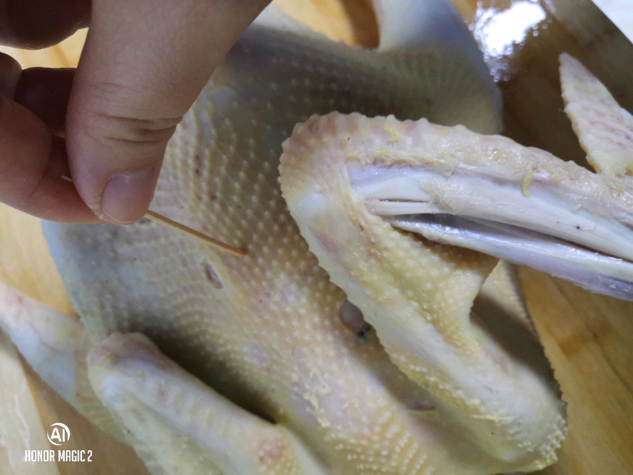 步骤1、家里养的鸡,清洗干净后,去头去脚。