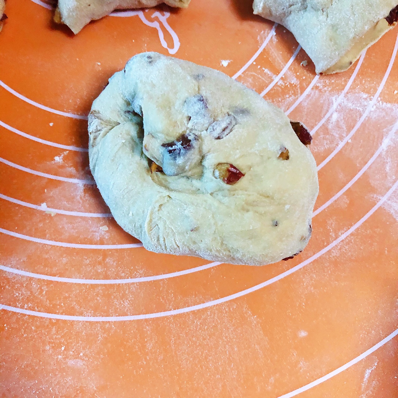 步骤7、100克大枣去核切成小粒分次加入面团中揉匀。
