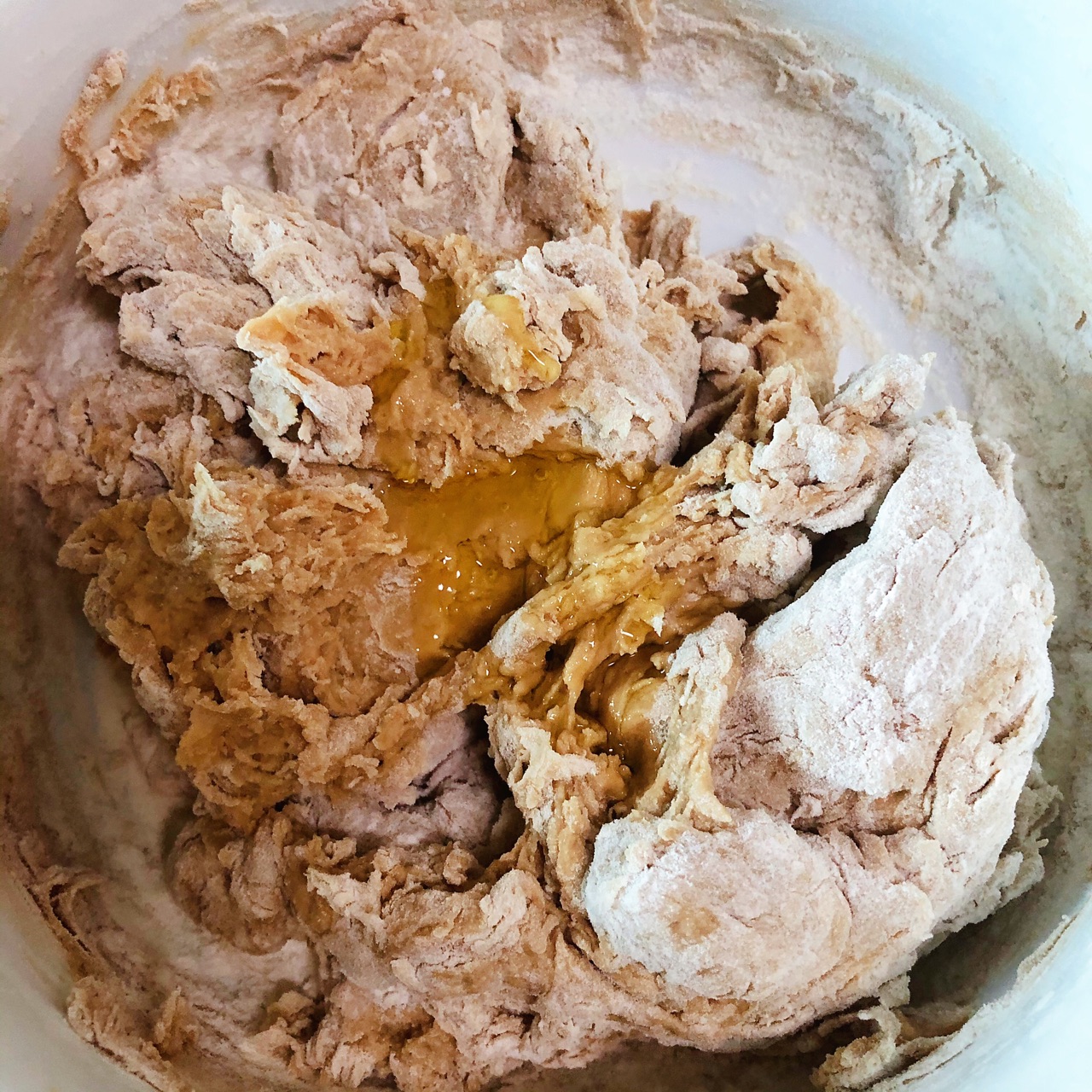 步骤4、搅拌至面絮状加10克油。