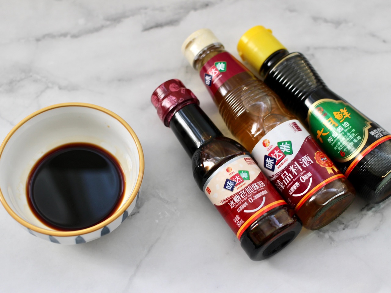 步骤5、现在来调制调料汁,碗里加入料酒和酱油和老抽。