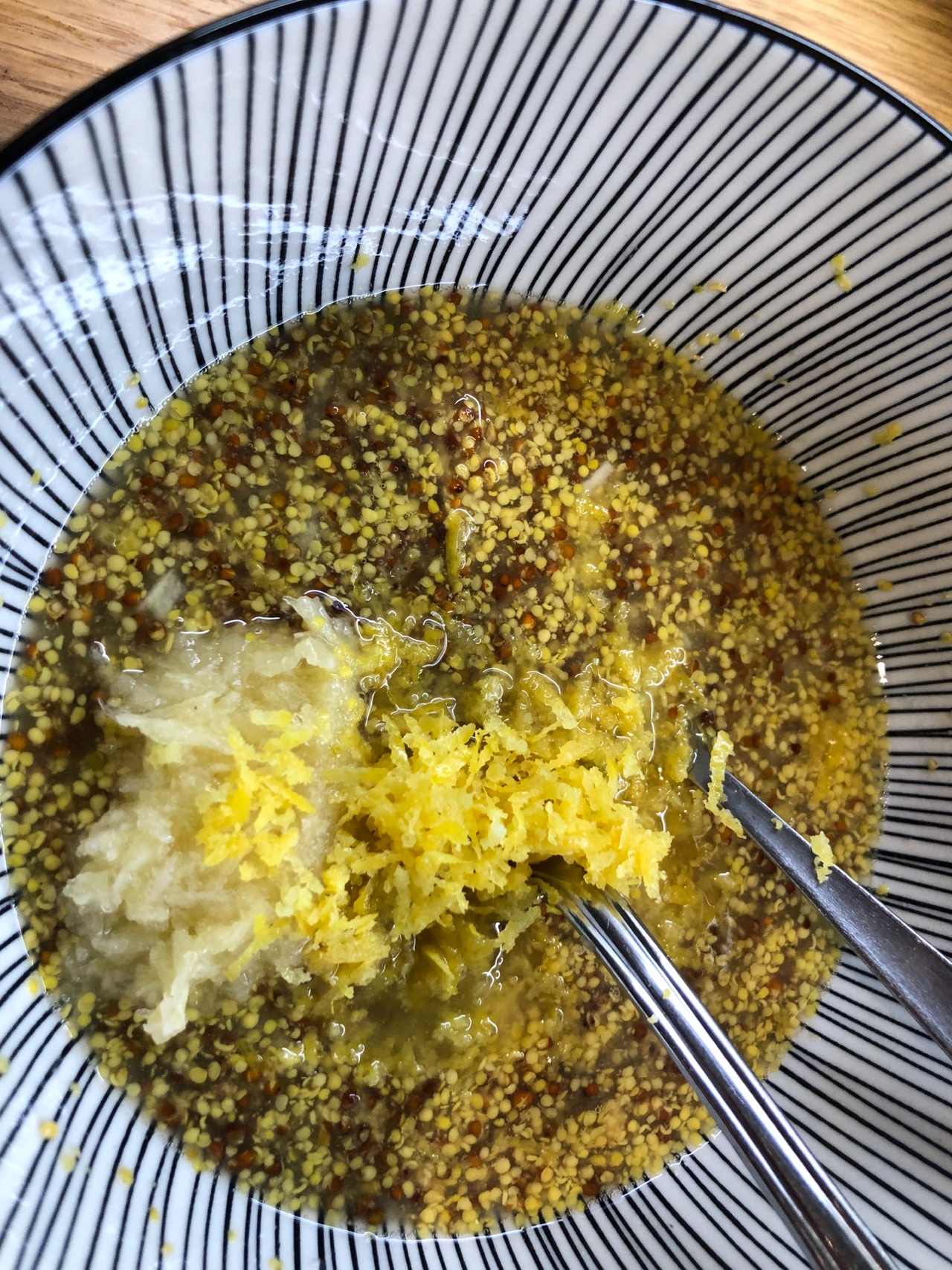 步骤9、把蒜泥和柠檬屑都加入碗中拌匀