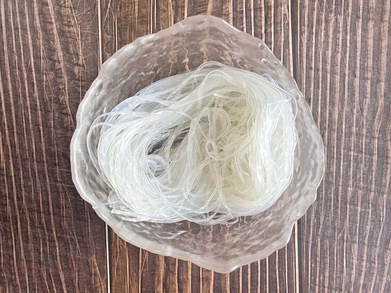 步骤6、放入粉丝,然后加入1勺味达美生抽➕半勺味达美耗油➕1茶匙盐➕1茶匙糖➕半勺鸡精煮至粉丝变熟。