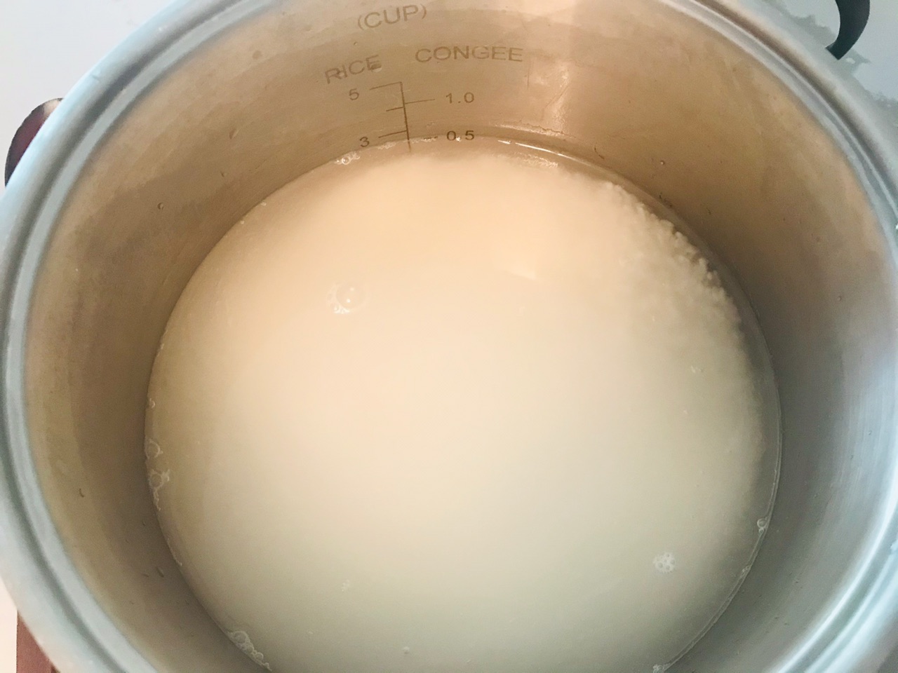 步骤1、米洗净,放入电饭煲中,按平时做米饭的正常水量放水。