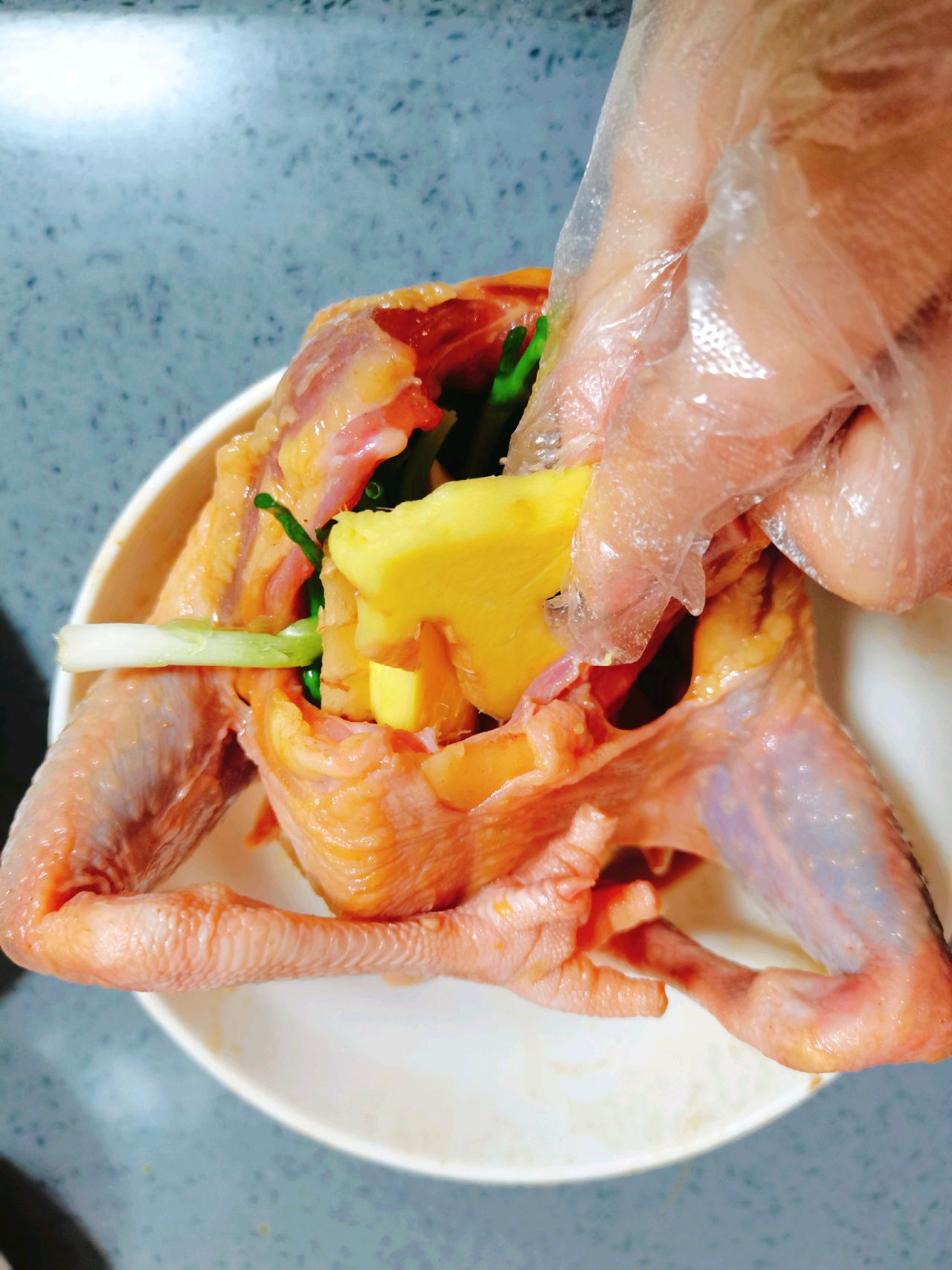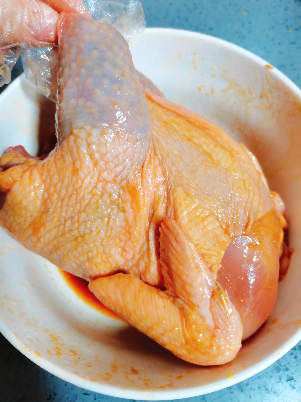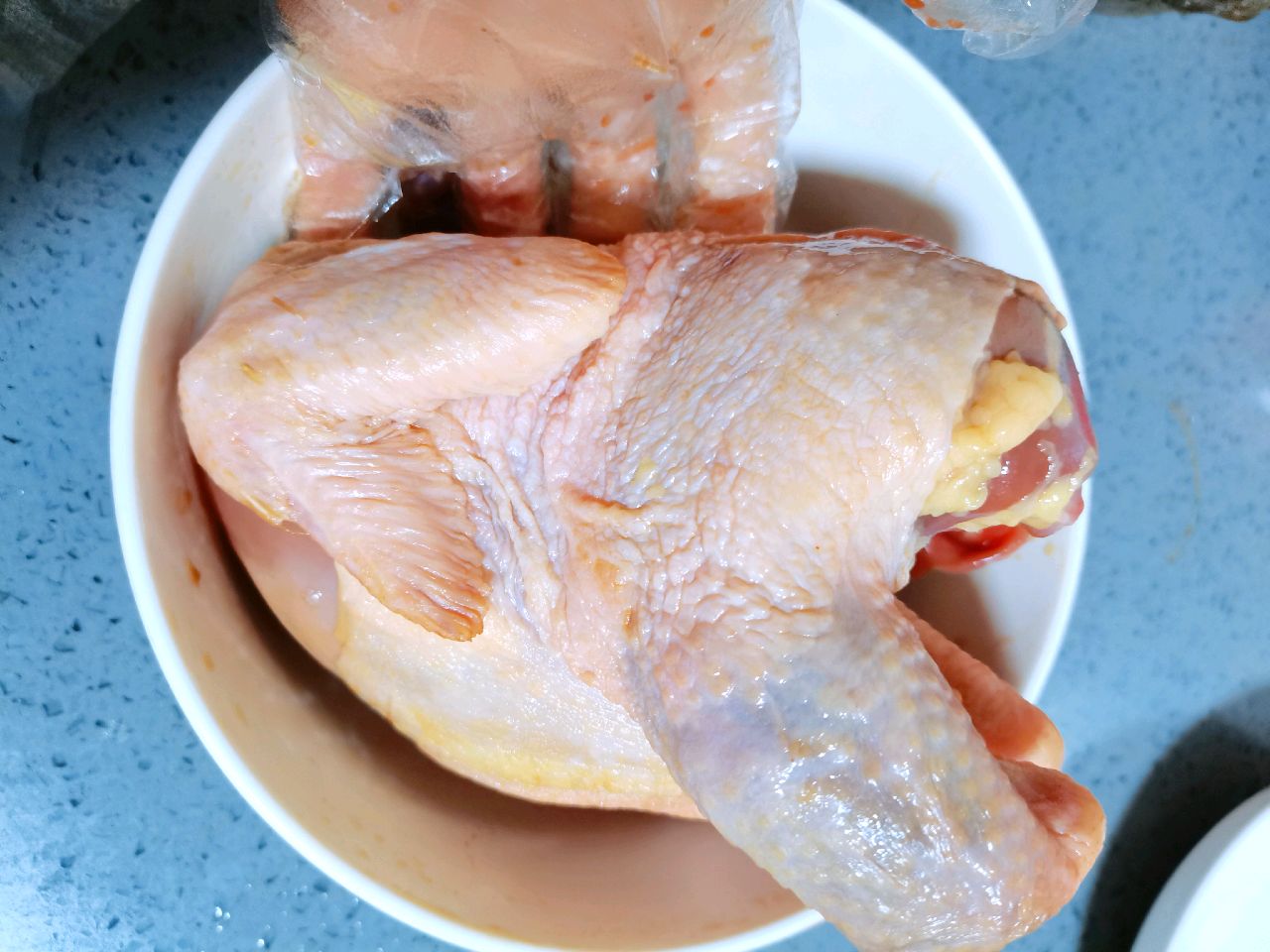 步骤1、整鸡洗清干净,用厨房纸巾擦干表面水份