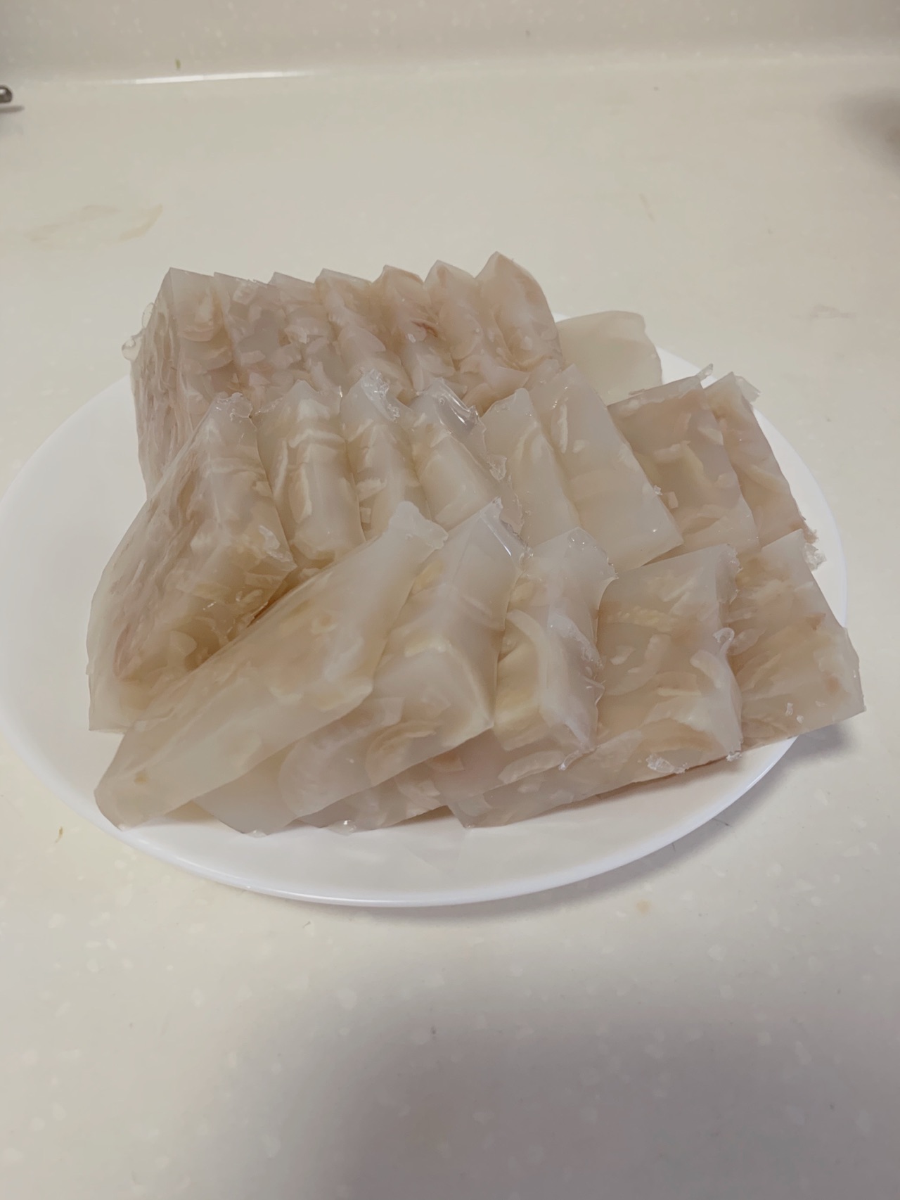 步骤11、切片装盘,搭配蒜酱,超级Q弹好吃