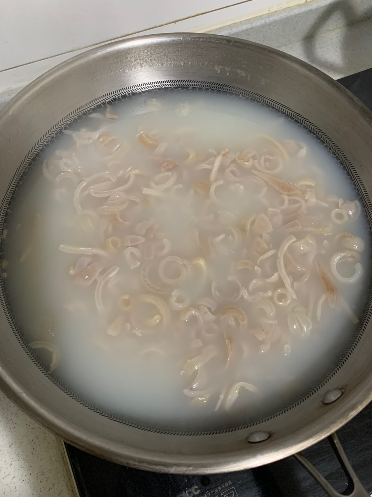 步骤9、汤汁少一半,成奶白色即可,汤汁触感粘稠
