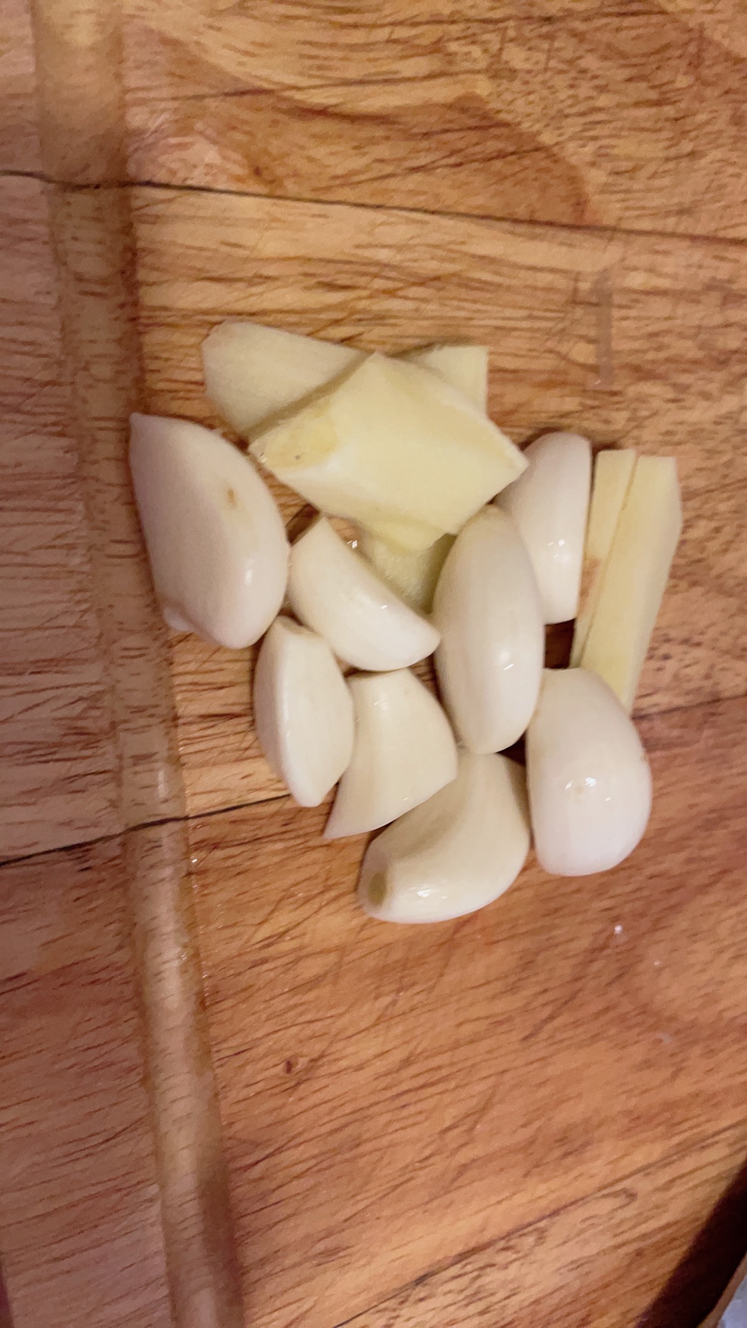 步骤4、食用油+香油1:1比例(香油是关键)加入蒜瓣、姜片、花椒炒香
