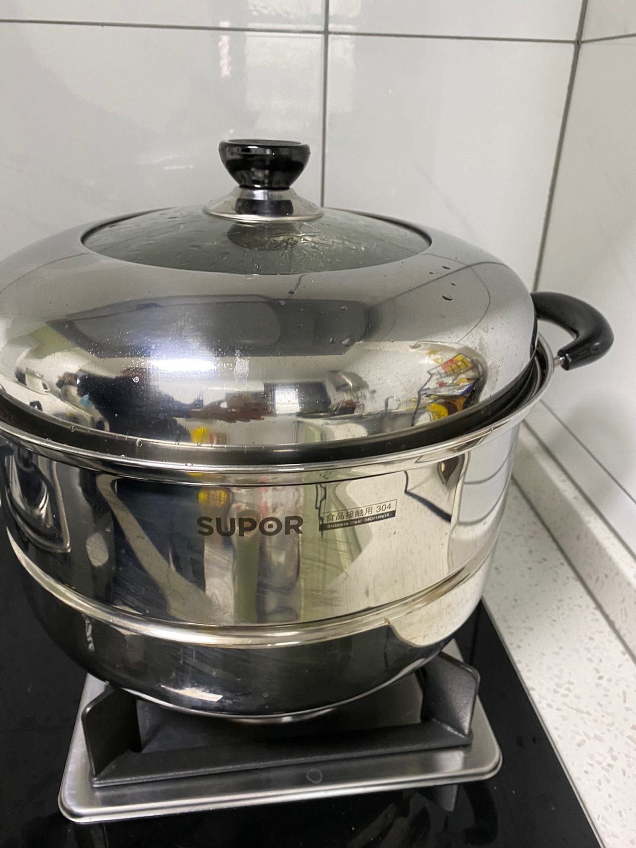 步骤4、超市买的是面条摊开放在蒸锅里,大火蒸15分钟