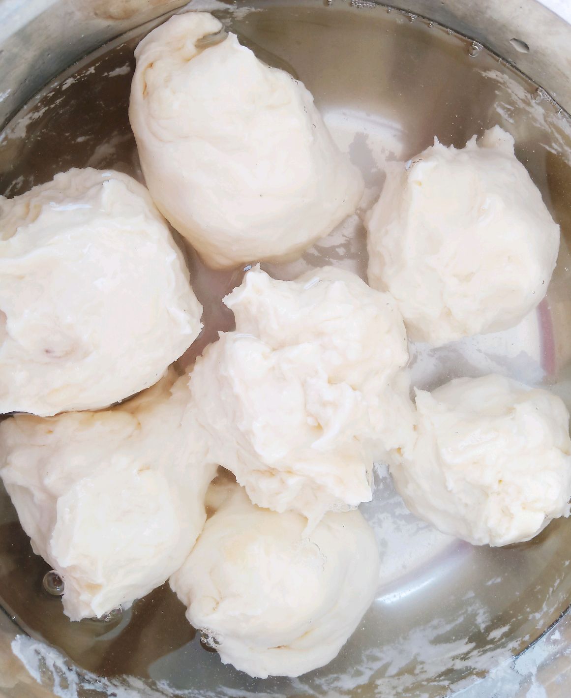 步骤10、立刻取出揪成小饼状贴入锅中。
