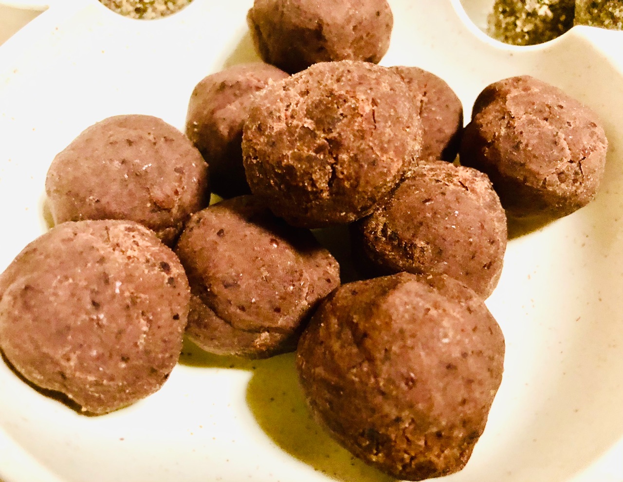 辅料:糖粉40克、鸡蛋2个、黑芝核桃馅适量、豆沙馅适量