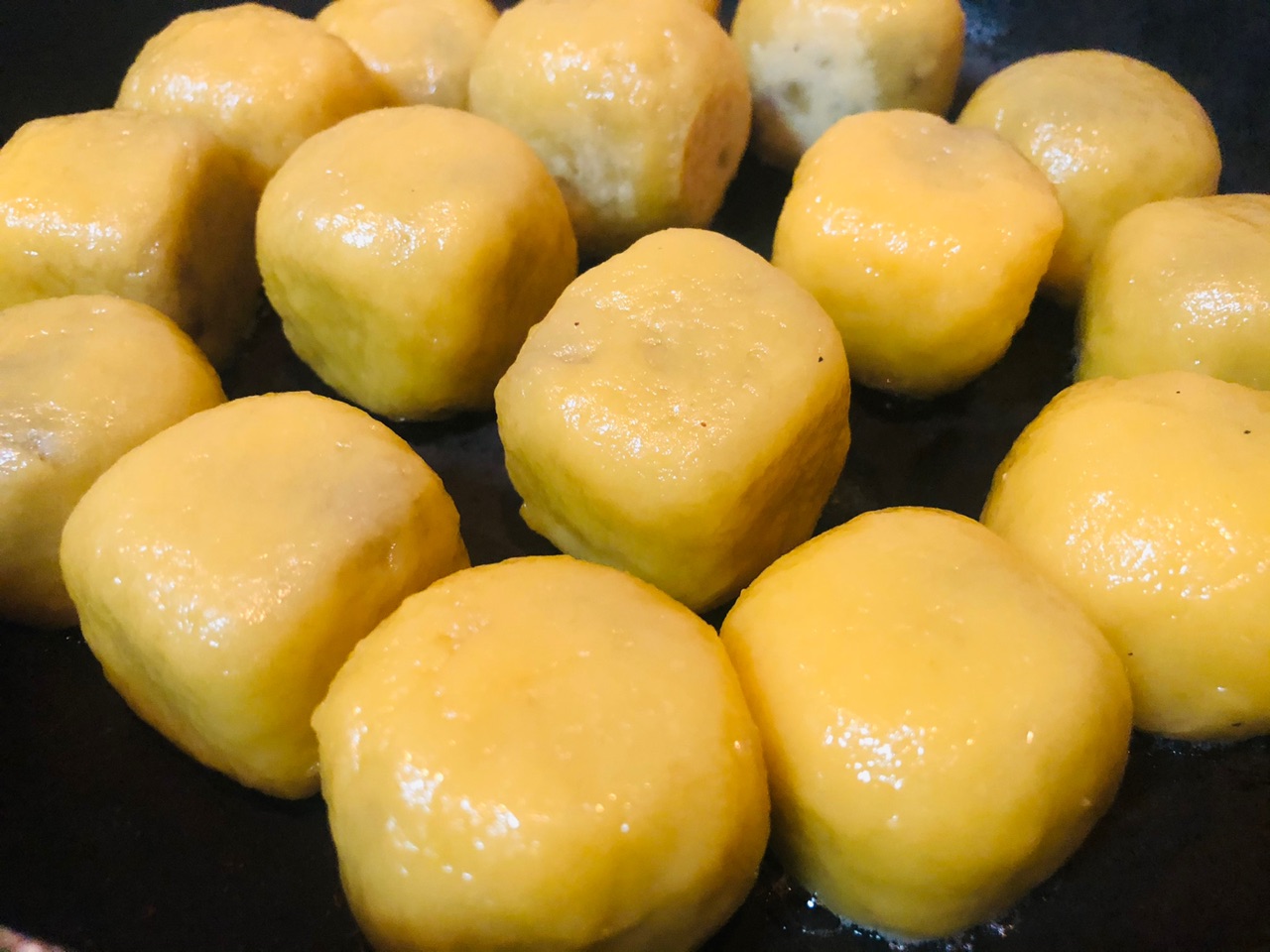 步骤8、把做好的胚子放进平底锅、(不用额外刷油)