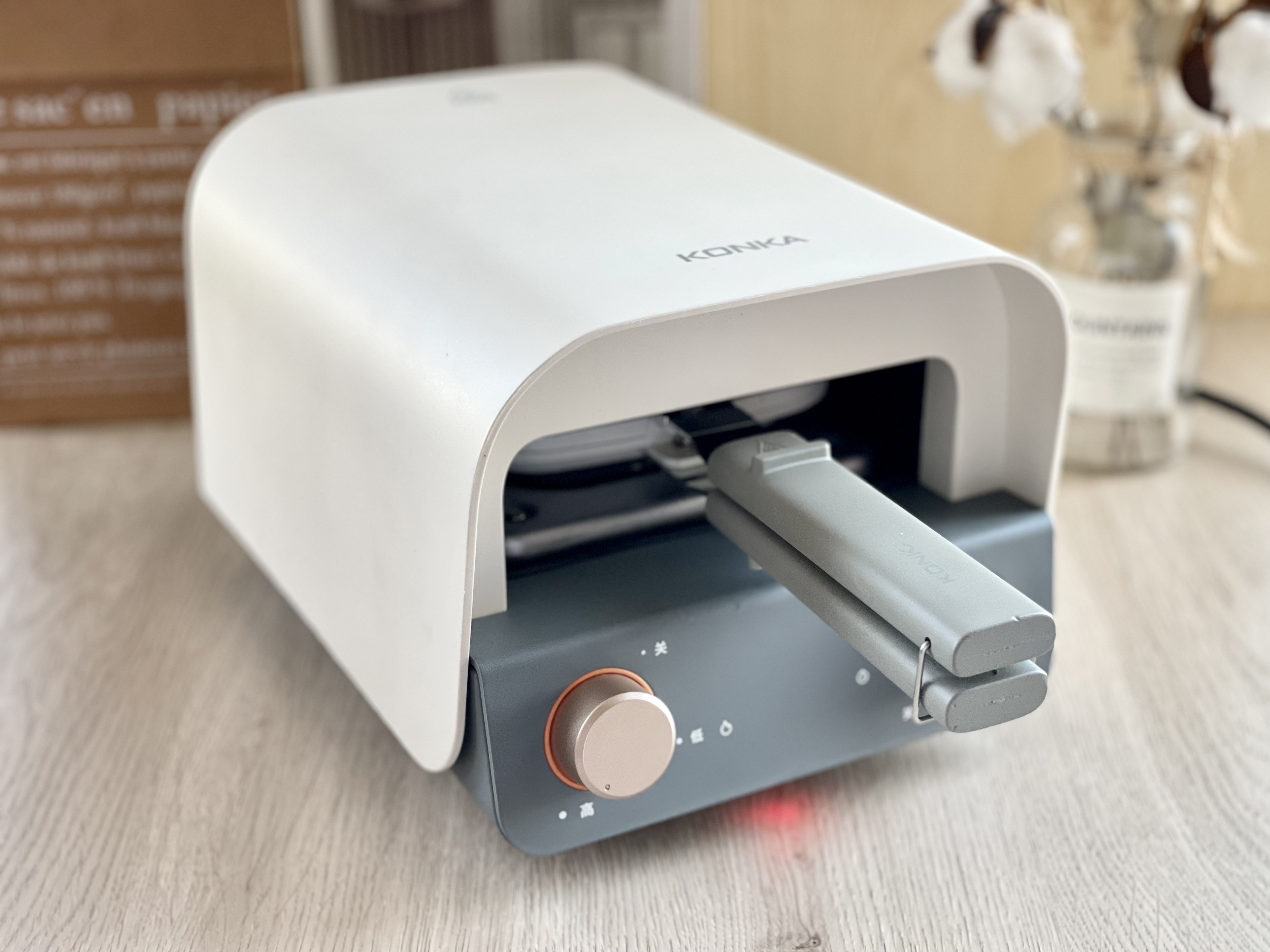 步骤5、把华夫饼盘推入康佳早餐机,设定大火,时间5分钟。