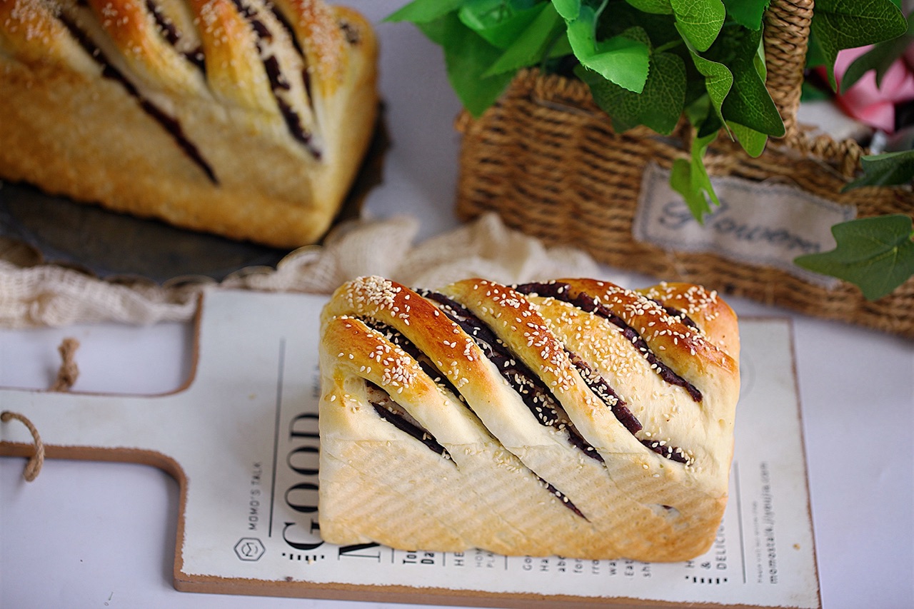 辅料:水200克、主面团:、高筋粉500克、鸡蛋2个100克、牛奶80-90毫升、砂糖60克、盐5克、酵母粉5.5克、黄油35克、豆沙馅360克