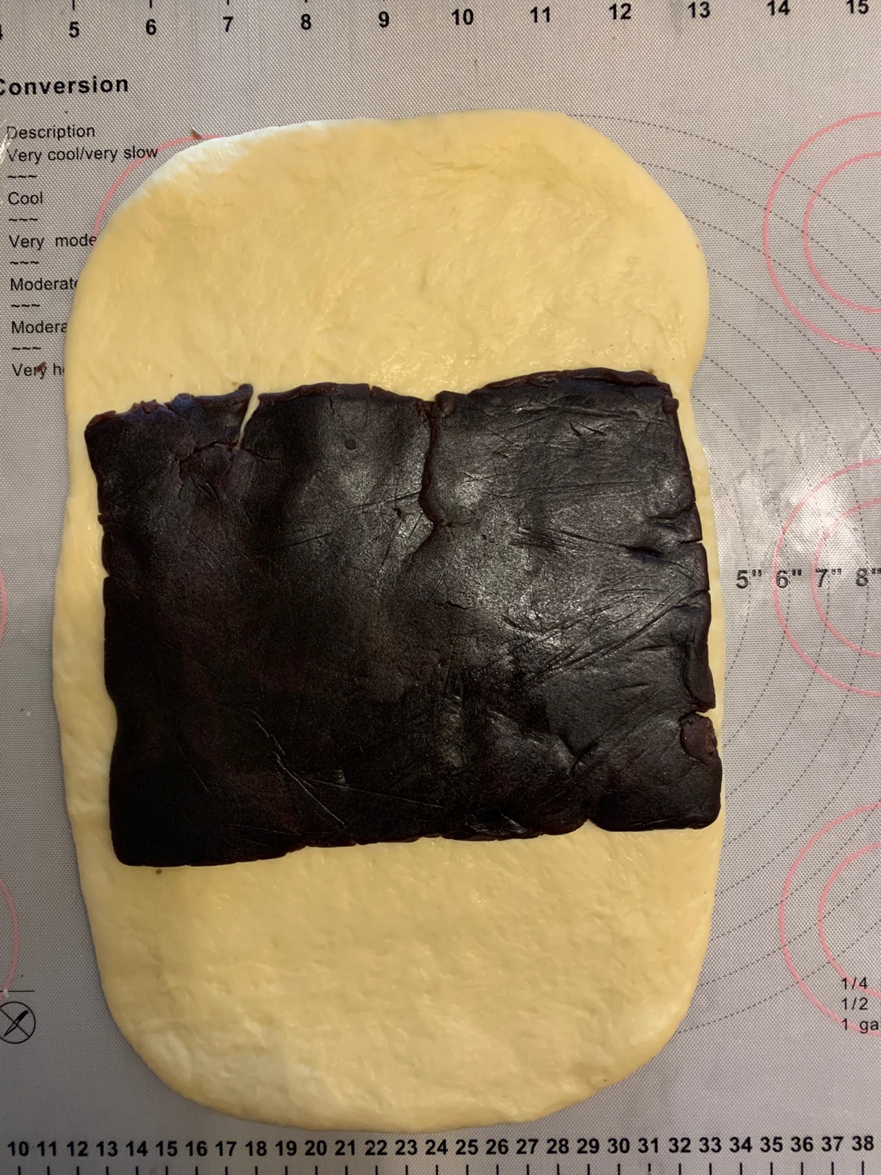 步骤6、豆沙馅装保鲜袋里擀成长方形。