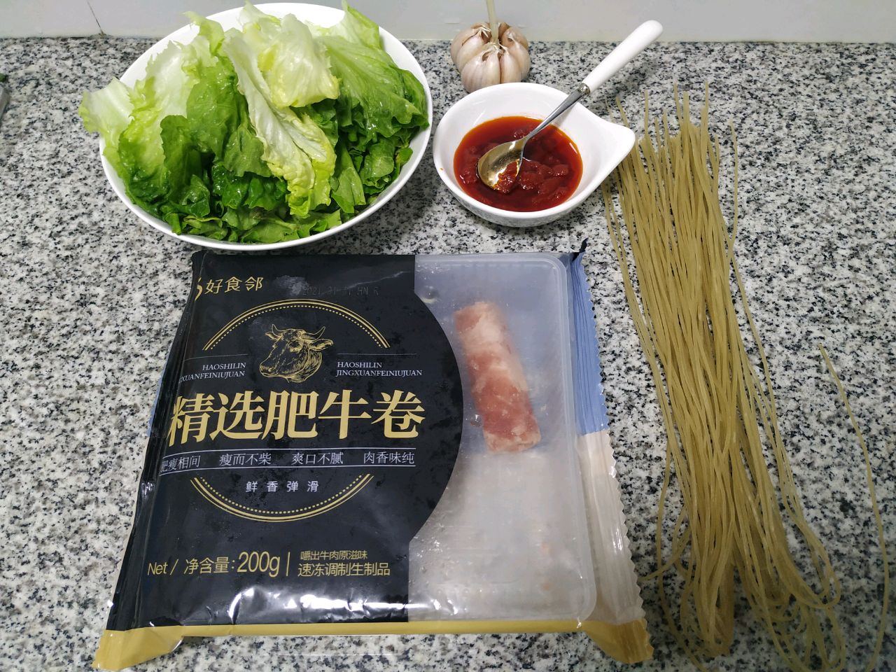 步骤1、用到主要的食材是:粉丝、生菜、肥牛