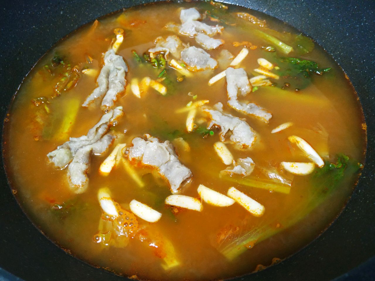 步骤8、放入切好的蒜片,同时把之前焯水的肥牛也下锅,煮一分钟即可。