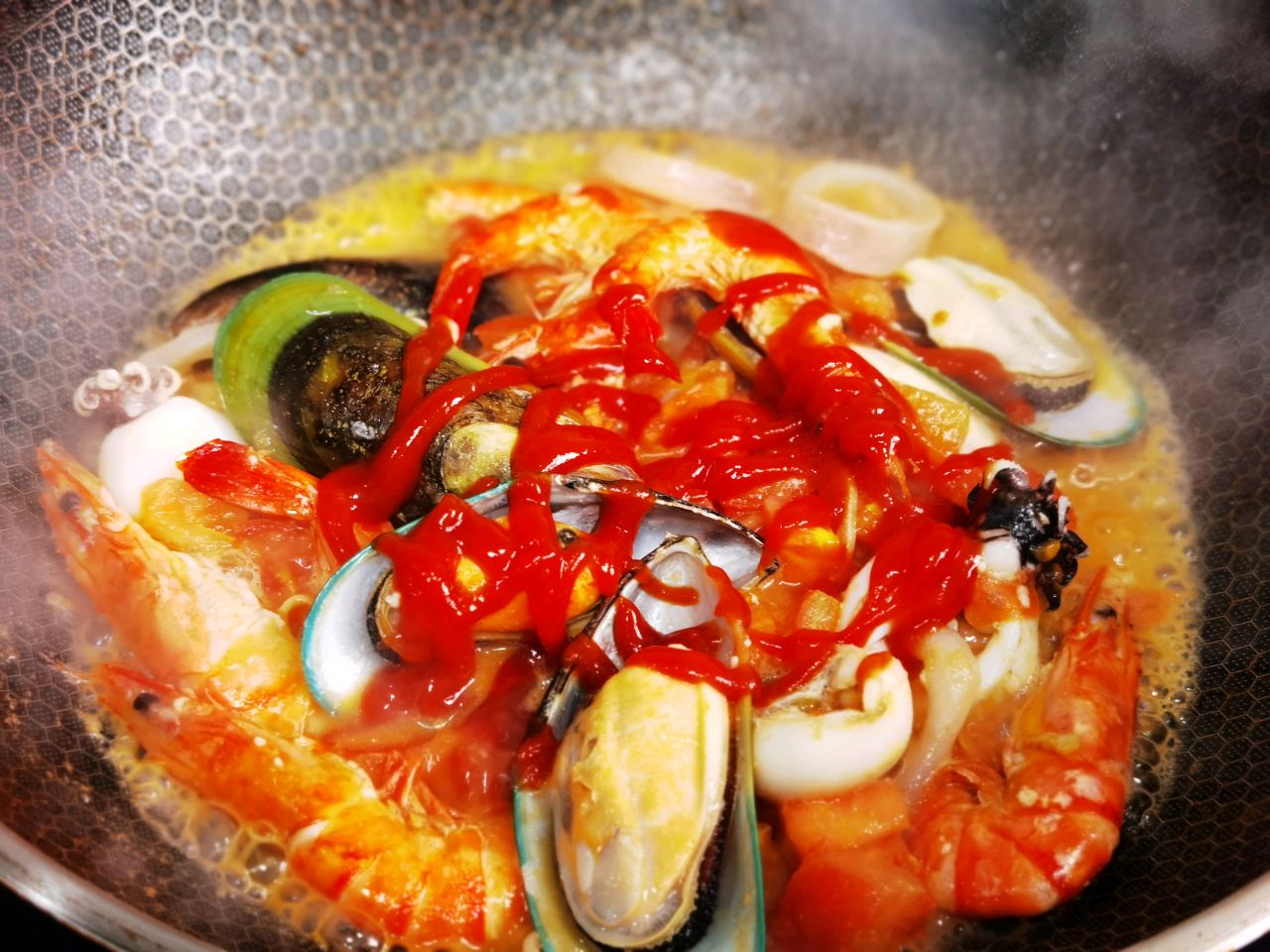 步骤5、炒到番茄出水后加番茄酱