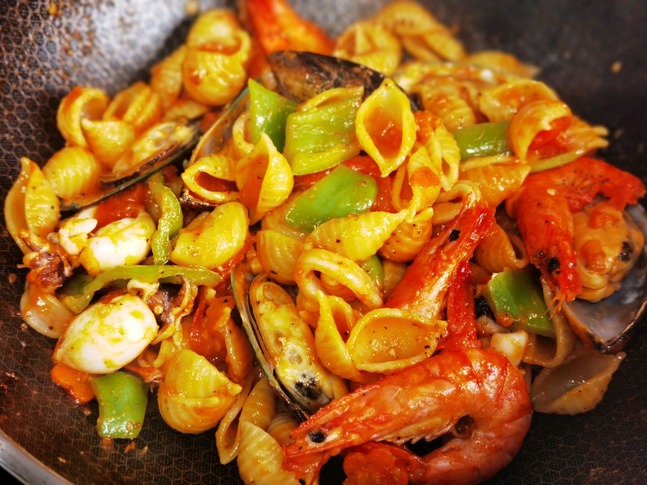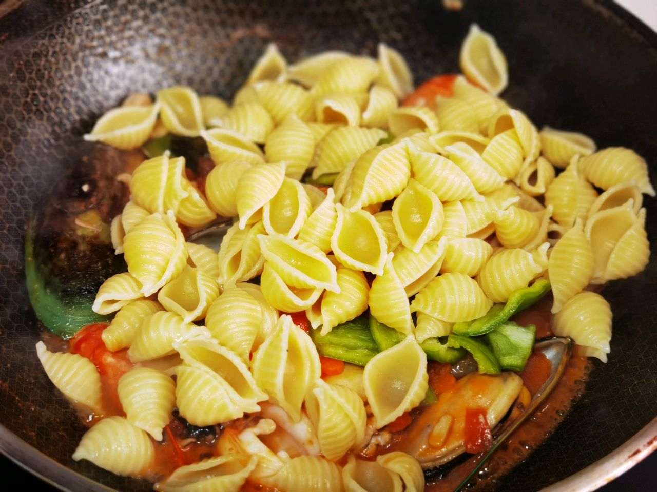 材料用量是三个人的份量,海鲜和配菜可以用其他食材代替,当然意面的形状也不是非用贝壳面,其他形状也都一样,供大家参考!