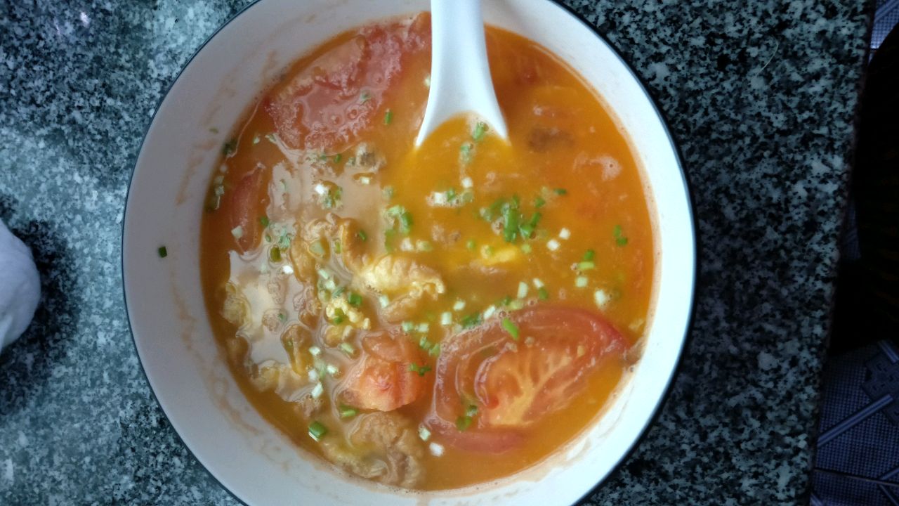 步骤1、番茄切大块点,我切成了8块(番茄我没有去皮,我习惯煮熟了直接在锅里把皮捞起来,本来也没几块,大家可以自己先去皮),姜拍碎,葱切细,鸡蛋调匀