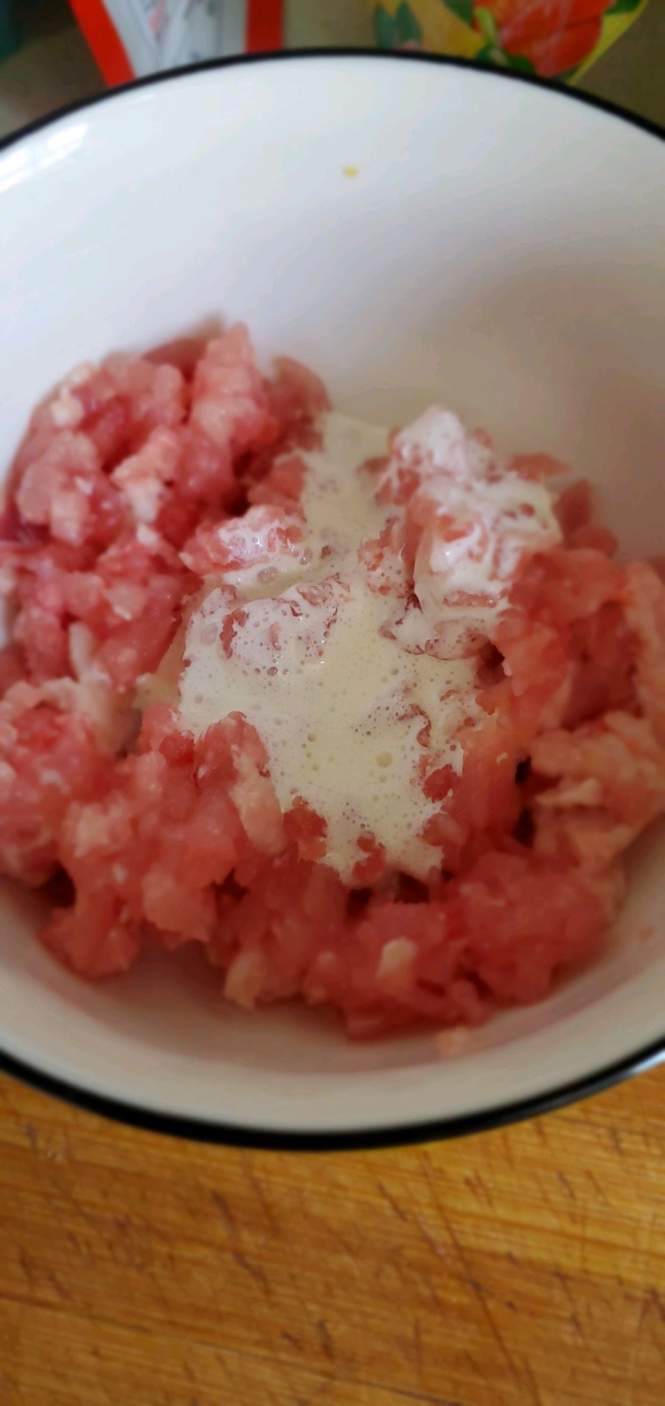 步骤7、炒肉,肉里我放了点植物淡奶油,增香的