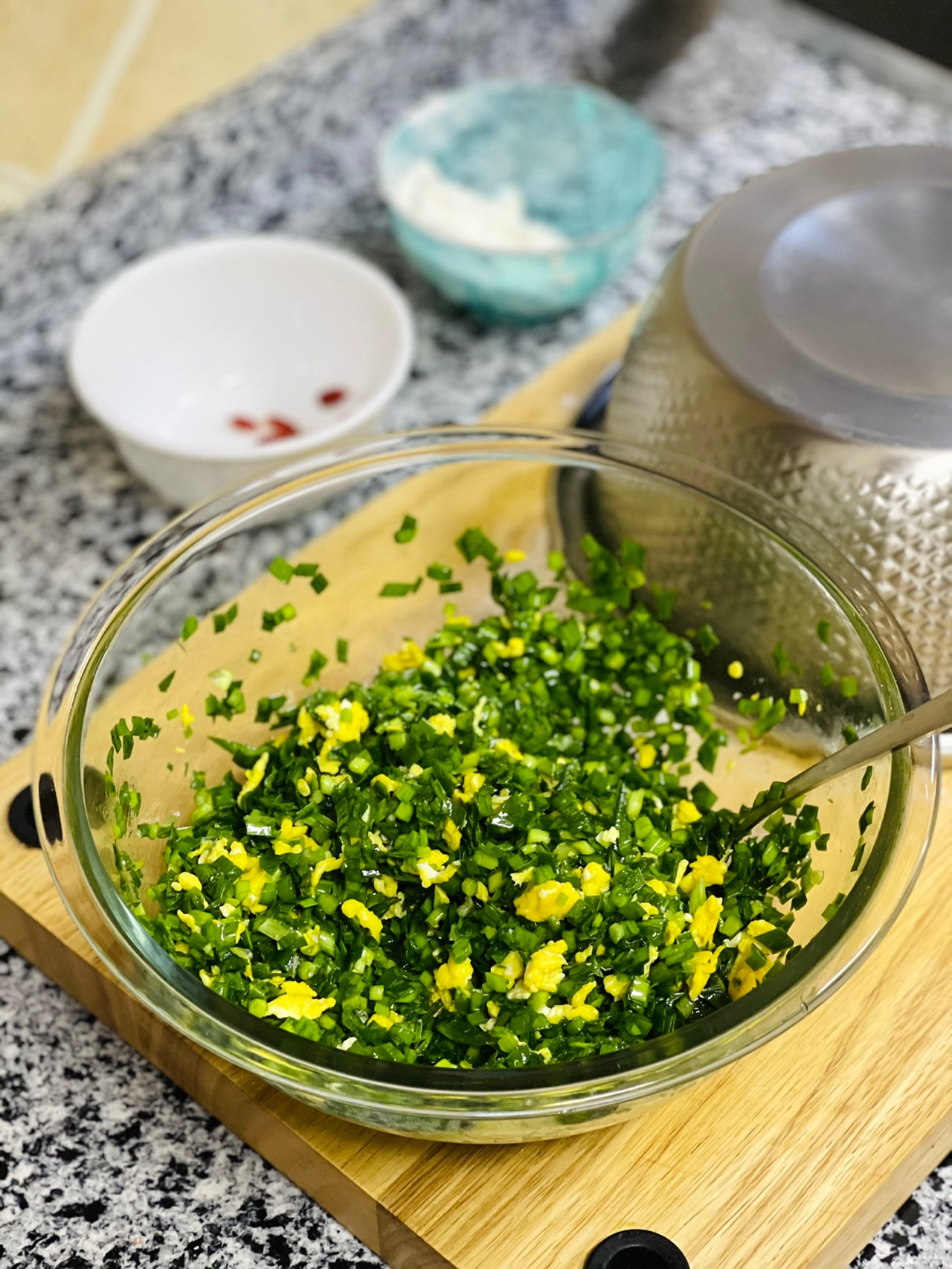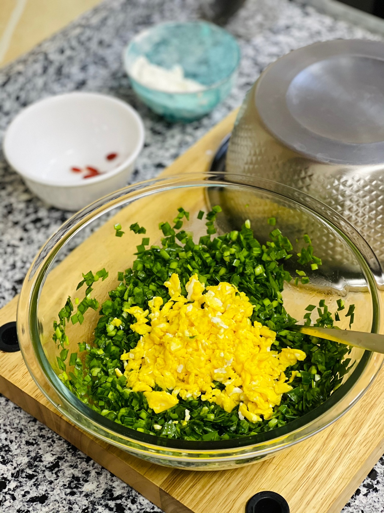 步骤5、韭菜洗干净控水、打两个鸡蛋