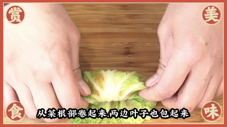 步骤11、从白菜根部卷到叶子部分.收口朝下