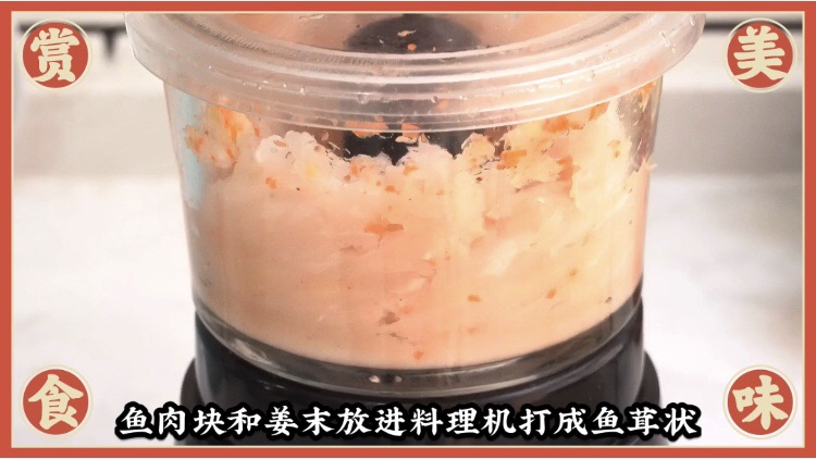 步骤6、鱼肉块和生姜末一起打成鱼茸状