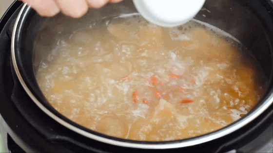 步骤4、开盖加入盐和枸杞,再煮2分钟即可