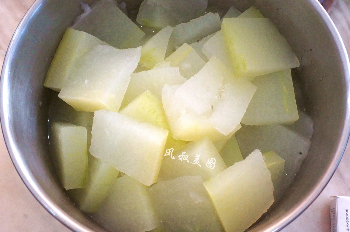 步骤1、900克冬瓜,用水煮成透明状,捞起。