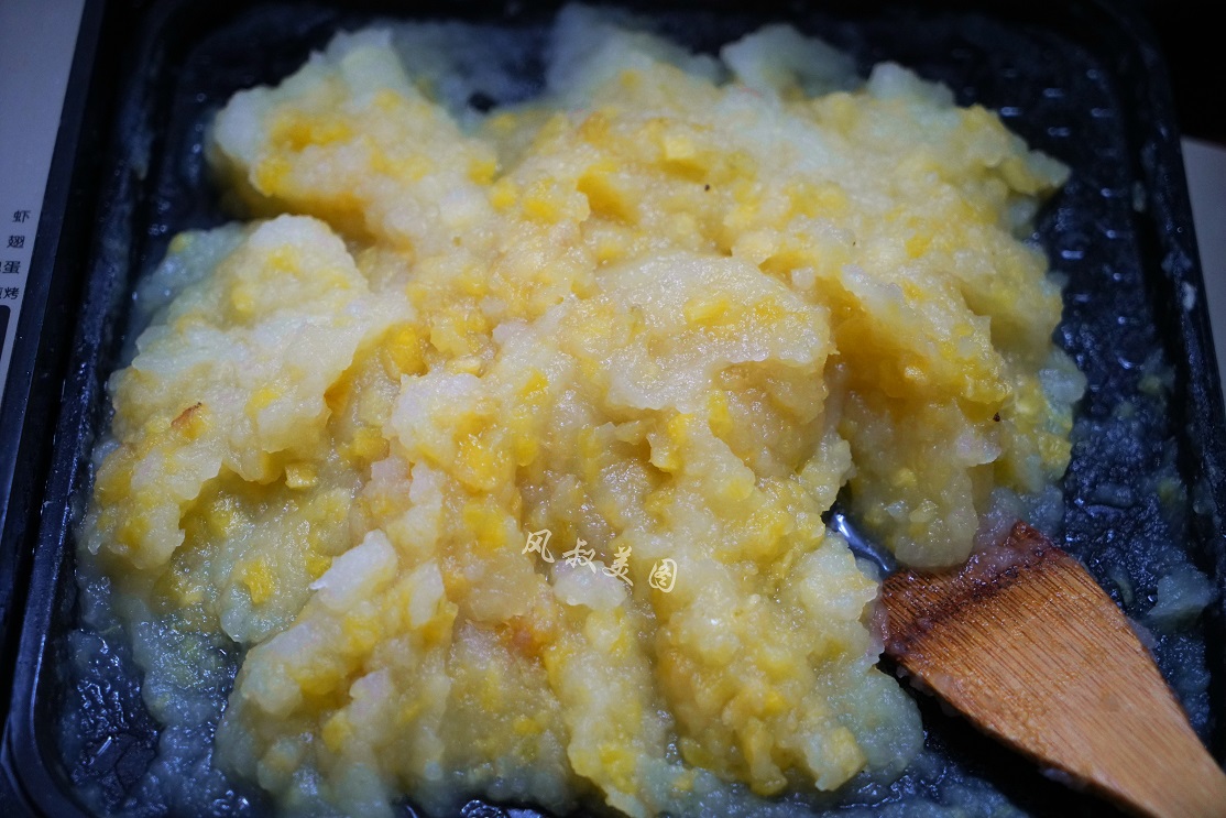 步骤4、先将冬瓜蓉倒入电饼铛翻炒,使其蒸发部分水份,加入凤梨颗粒,反复翻炒,当凤梨馅比较浓稠后,加入冰糖60克、麦芽糖60克,继续翻炒。