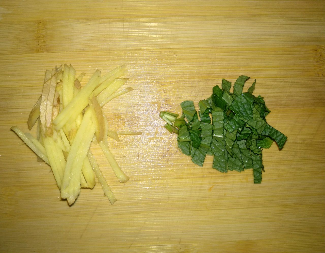 步骤1、生姜切丝,薄荷也切丝,我这是一人的分量哈~