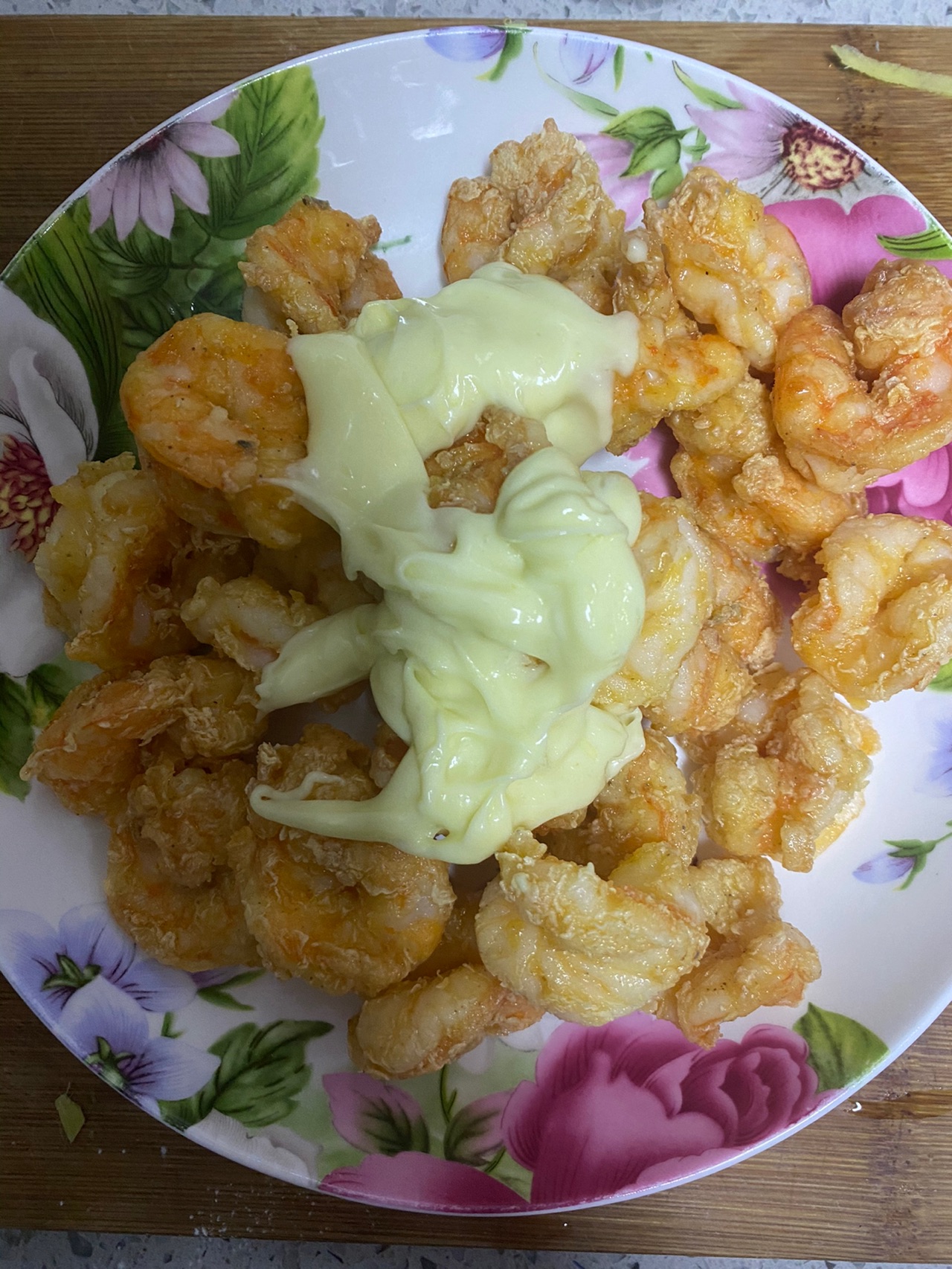 步骤5、锅内烧油小火炸,注意不要时间太长,虾仁很容易熟