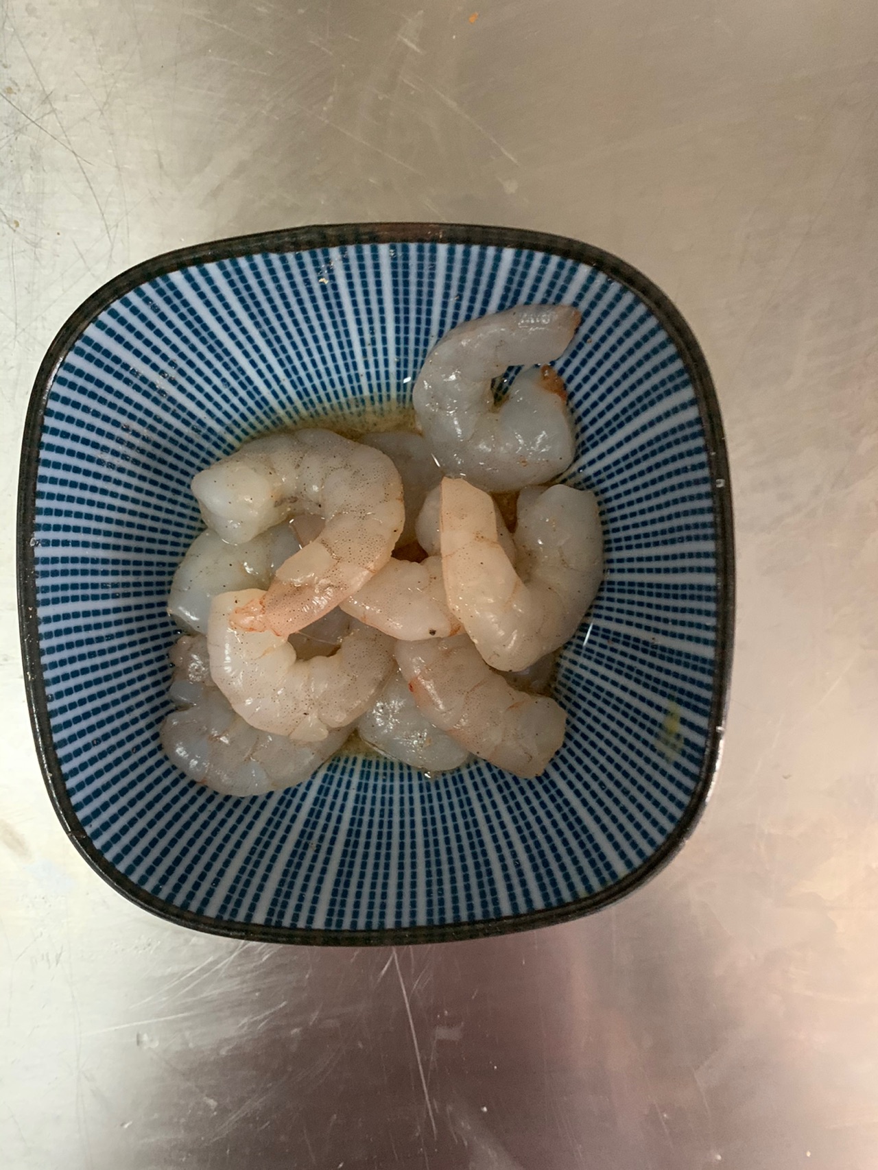 步骤6、虾仁都是处理好的,用料酒、白胡椒粉拌匀。