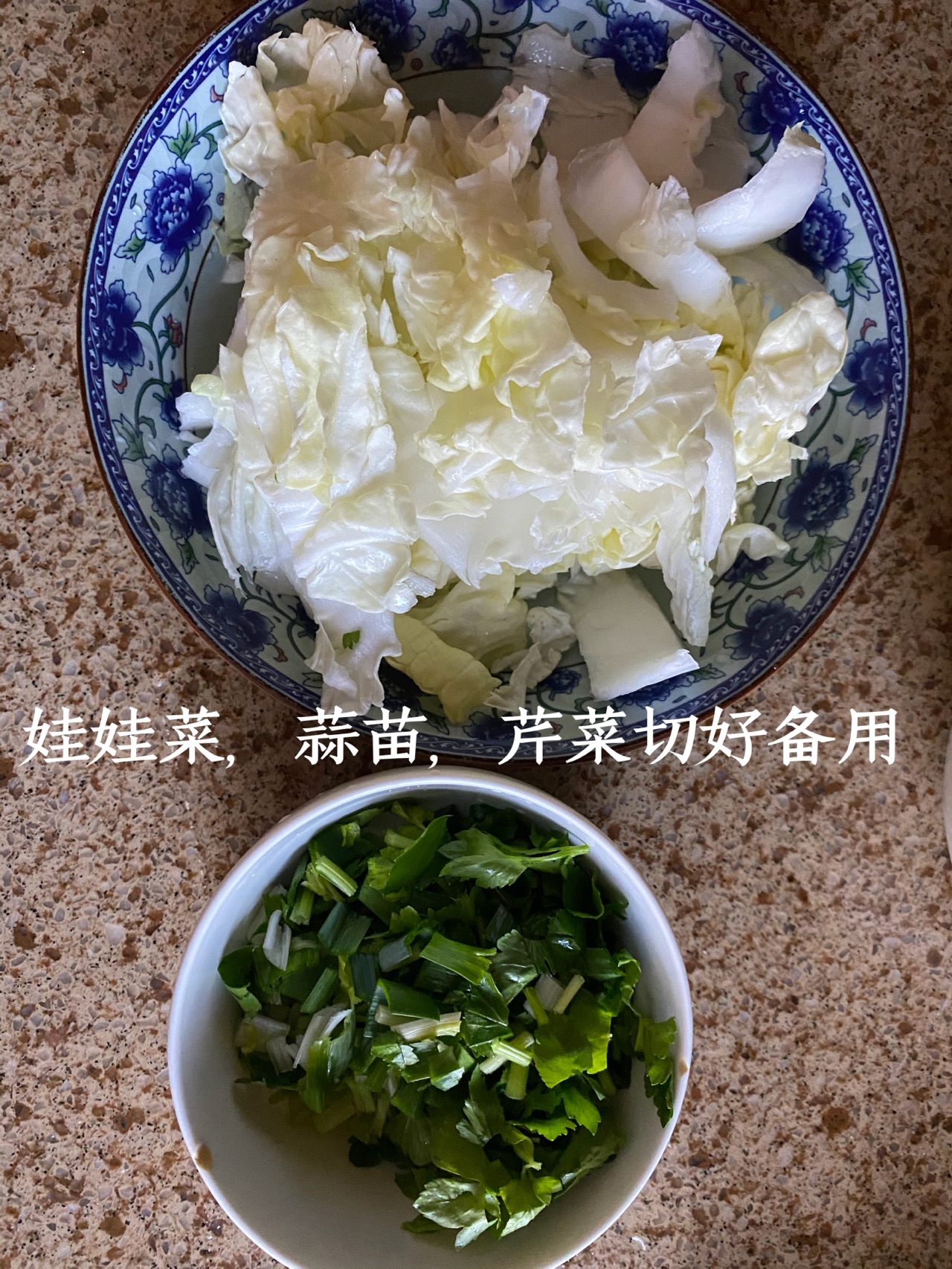 步骤4、娃娃菜,蒜苗,芹菜切好备用