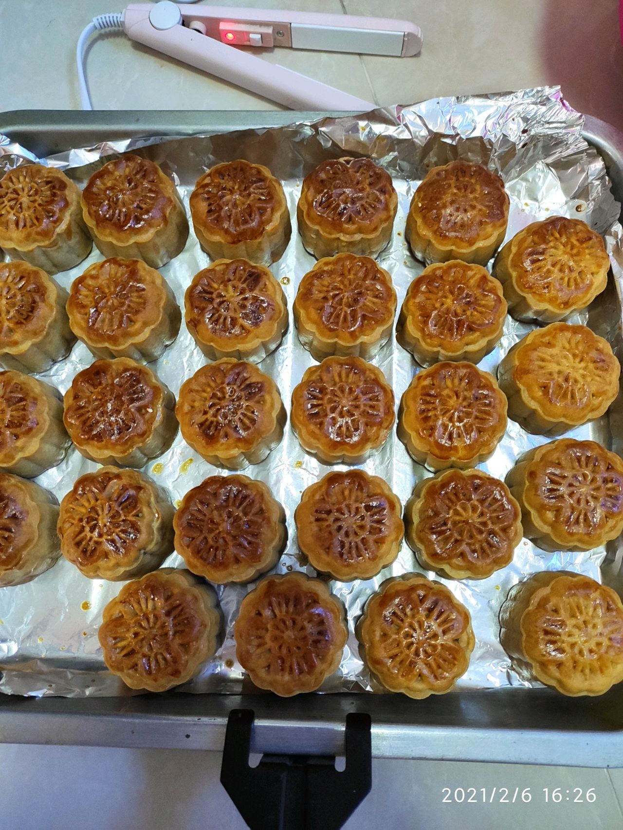 辅料:高筋面粉100克、转化糖浆170克、花生油80克、枧水8克、玻璃肉材料、肥猪肉200克、白砂糖150克、白酒40克、红腐乳汁60克、馅料、白芝麻100克、花生200克、炸蒜蓉100-160克、五香粉6克、高度白酒30克、南腐乳2块、熟糯米粉150克、表面蛋黄水材料、蛋黄1个、清水20克、此配方可以做35个/55克的饼