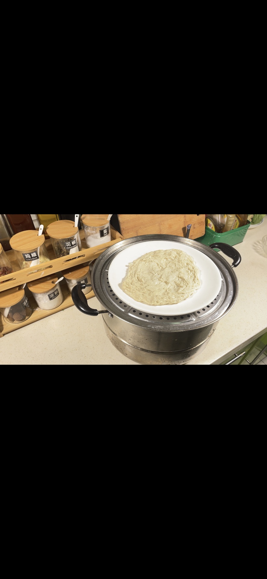 步骤7、把面筋放入蒸锅大火蒸15分钟