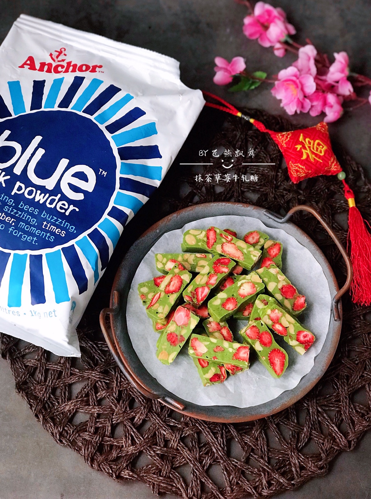 辅料:安佳奶粉90克、草莓脆50克、花生碎120克、抹茶粉8克