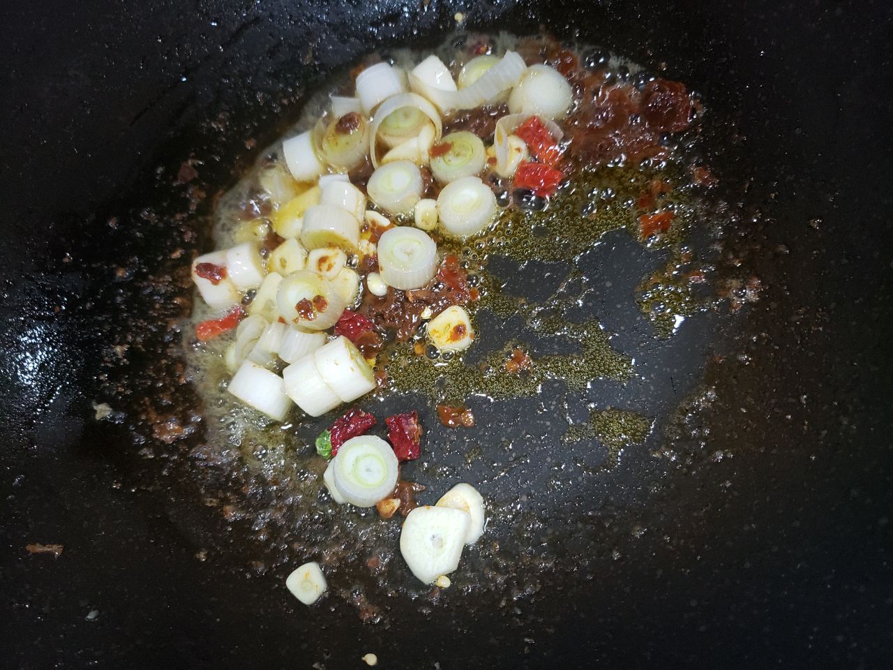 步骤10、入葱,蒜,干辣椒,煸炒出香味喜欢花椒也这步放