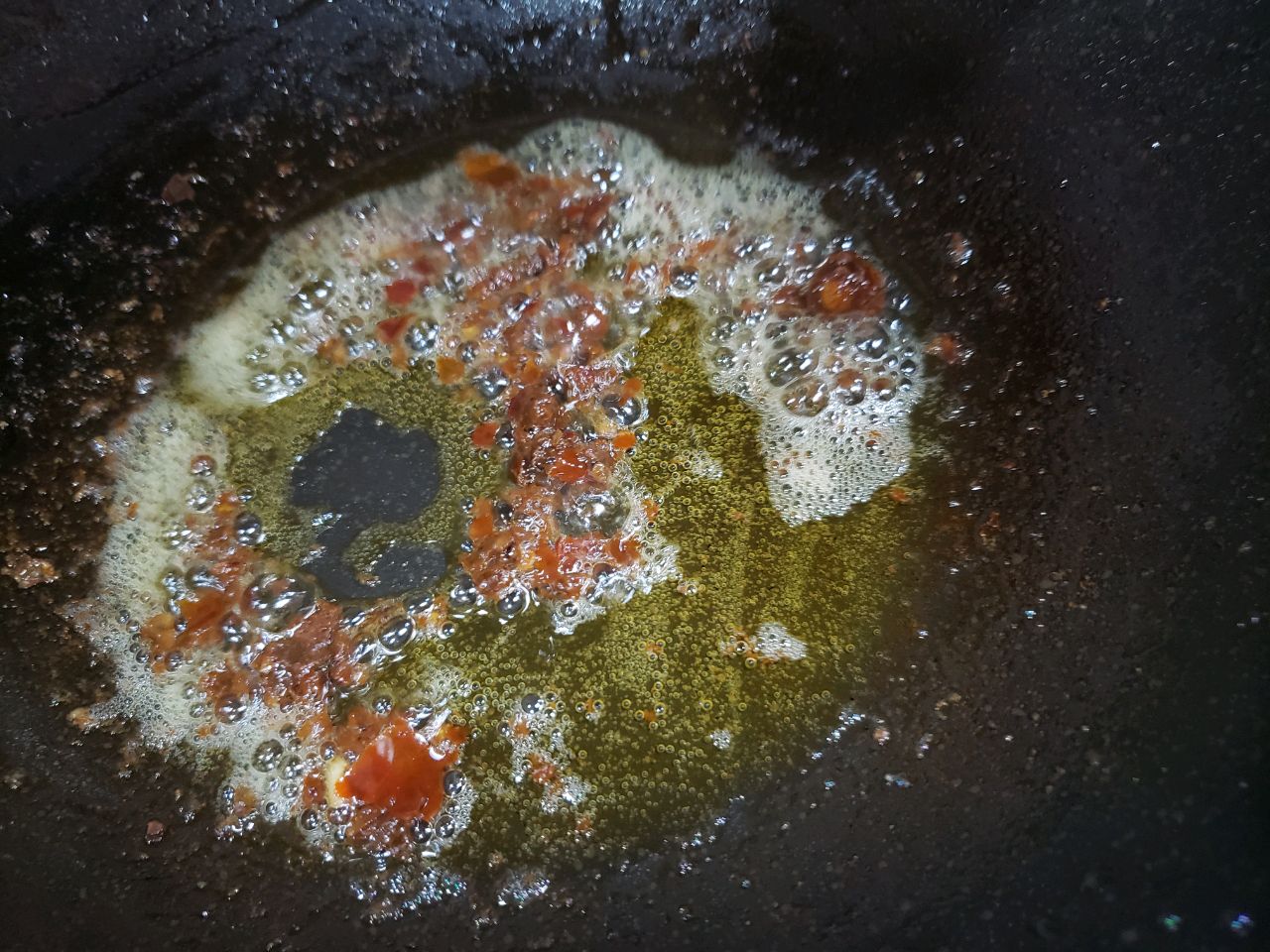 步骤9、添底油,加适量豆瓣酱,炒出红油