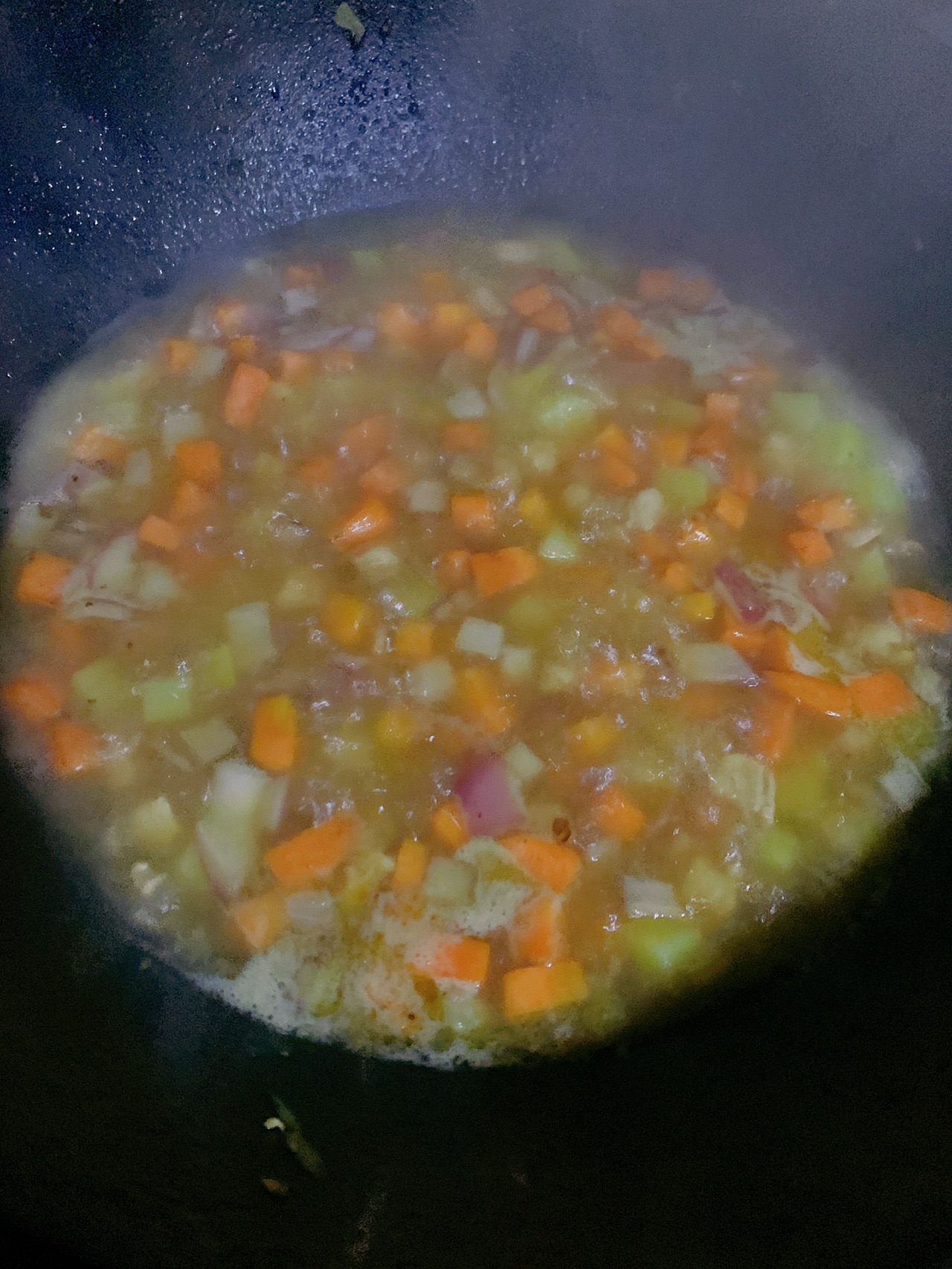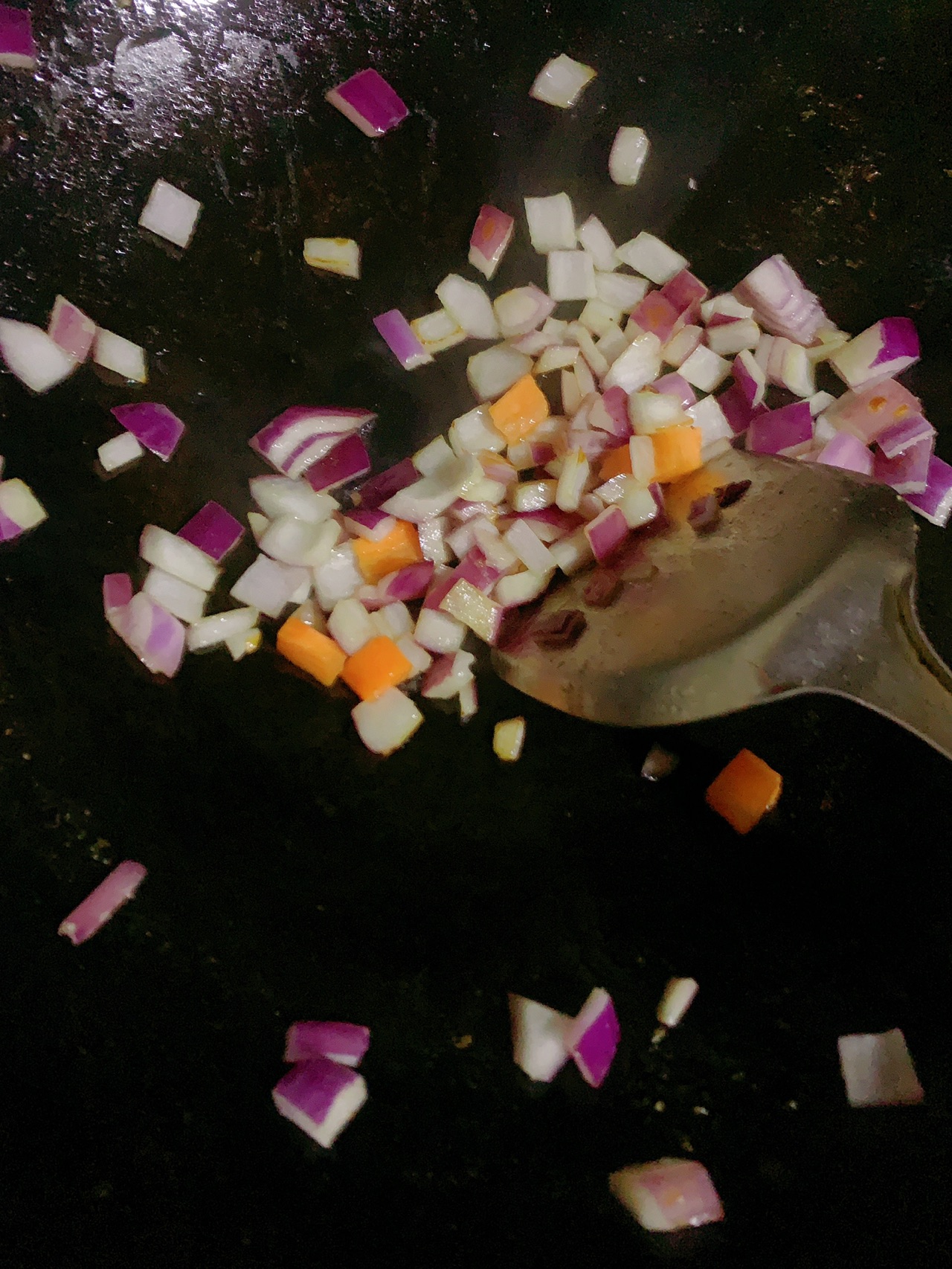步骤4、先把鸡丁炒至八分熟盛出,依次加入洋葱胡萝卜土豆翻炒
