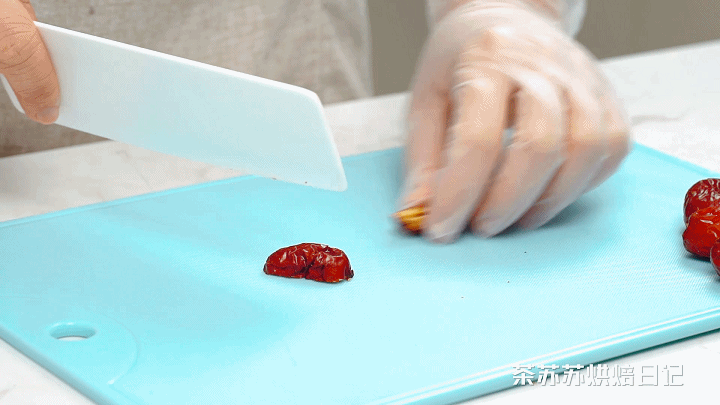 步骤1、红枣去核,切成4瓣