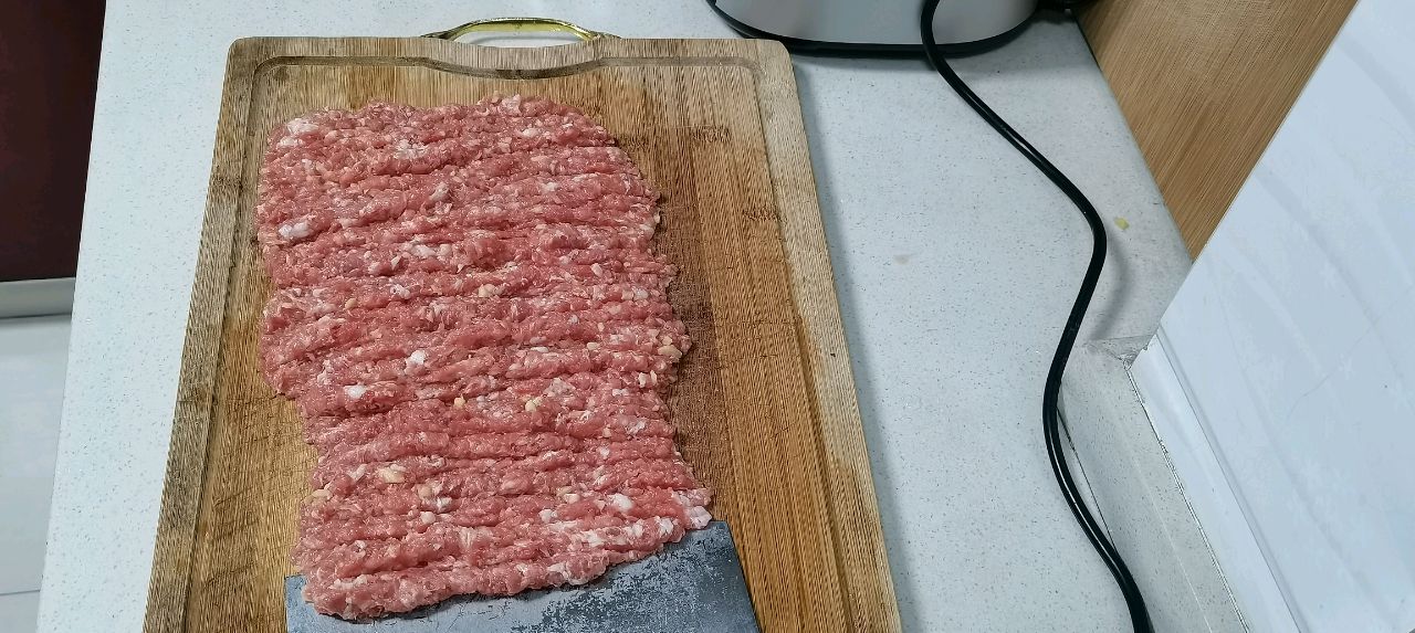步骤1、肉和一小节莲藕剁碎成泥装碗备用