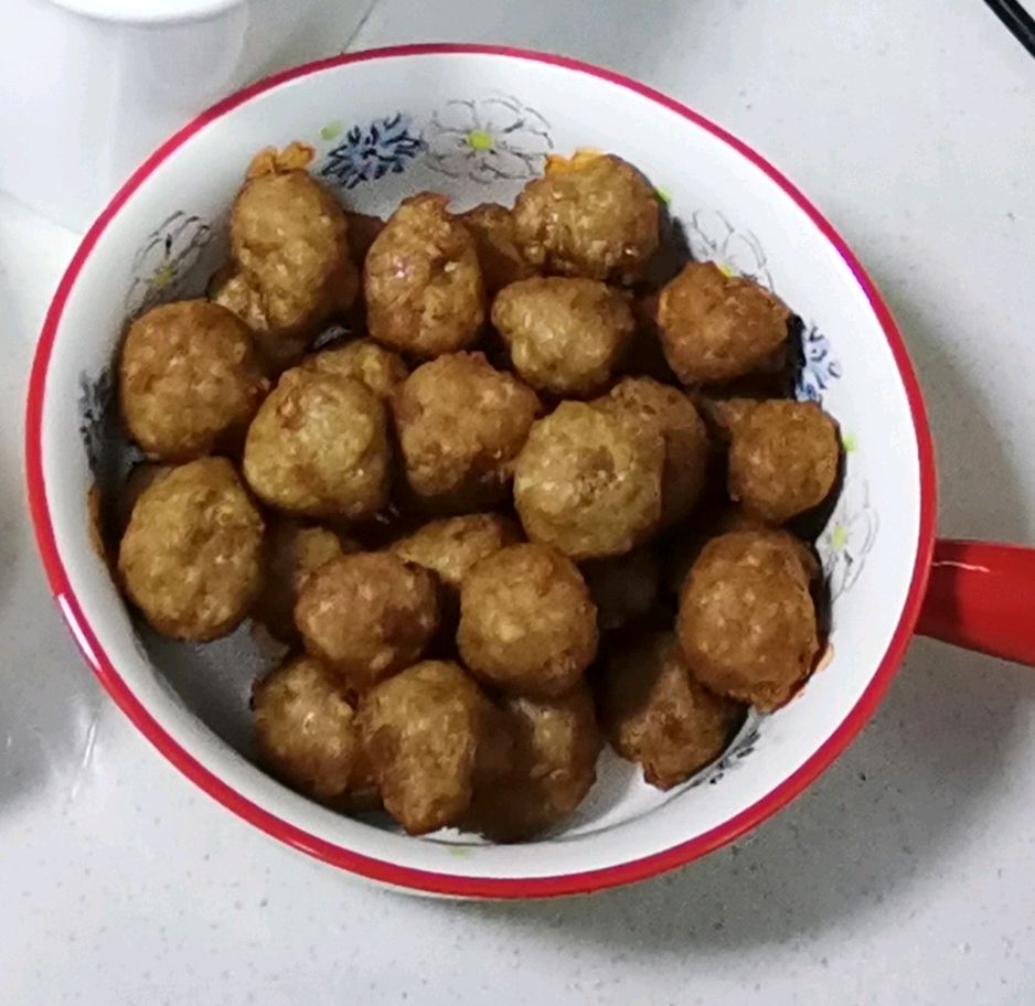 步骤8、炸肉丸:油五六成下入丸子下去炸